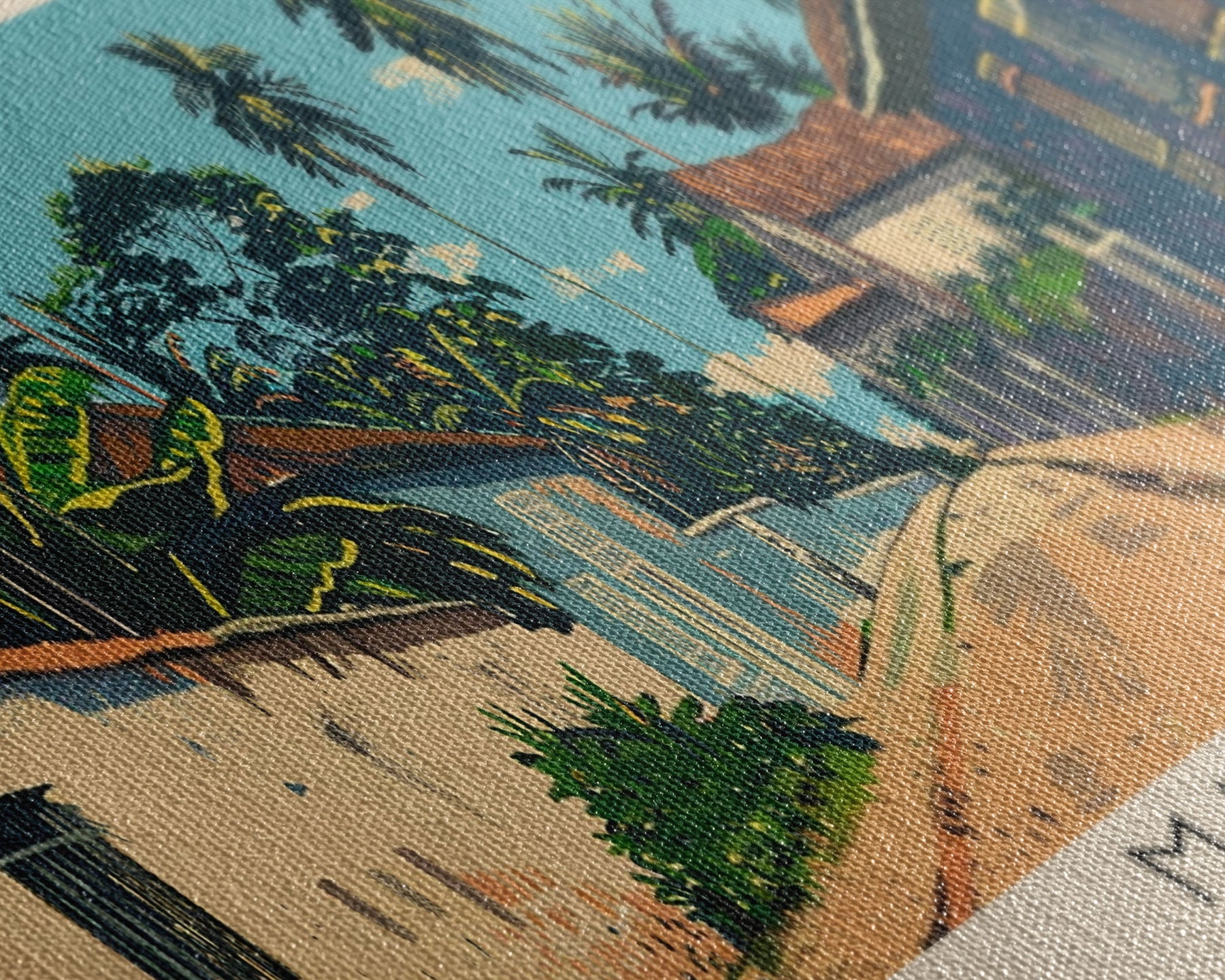 Most of our canvases are made in the USA, with the exception of canvases ordered with the light oak unstained frames, and any large canvases (24x48, 30x60, 16x48 and 20x60) ordered WITH a frame. These are temporarily made in and shipped from Europe, while we try to find a more consistent supplier in the USA.