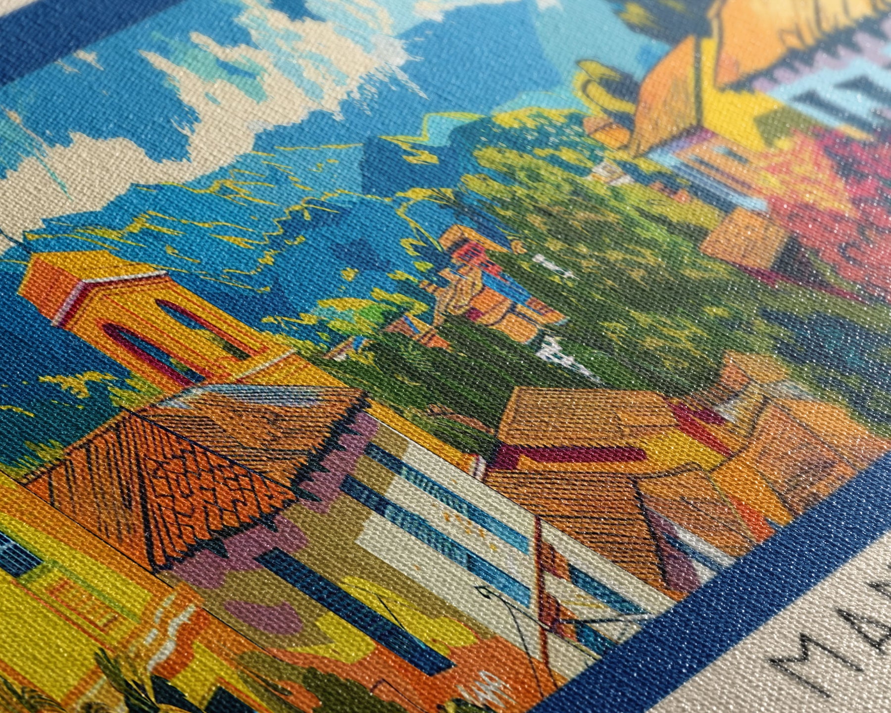 Most of our canvases are made in the USA, with the exception of canvases ordered with the light oak unstained frames, and any large canvases (24x48, 30x60, 16x48 and 20x60) ordered WITH a frame. These are temporarily made in and shipped from Europe, while we try to find a more consistent supplier in the USA.