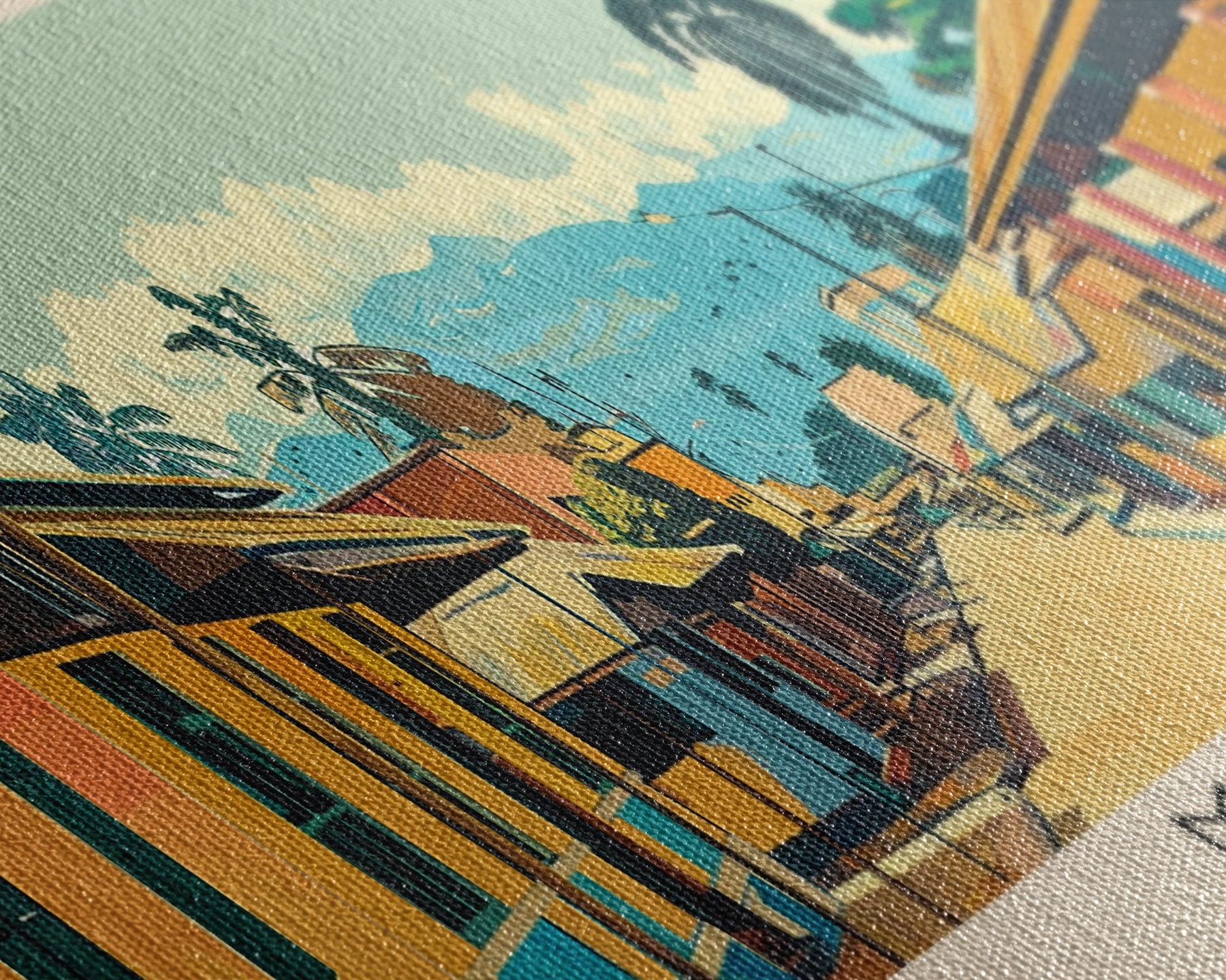 Most of our canvases are made in the USA, with the exception of canvases ordered with the light oak unstained frames, and any large canvases (24x48, 30x60, 16x48 and 20x60) ordered WITH a frame. These are temporarily made in and shipped from Europe, while we try to find a more consistent supplier in the USA.