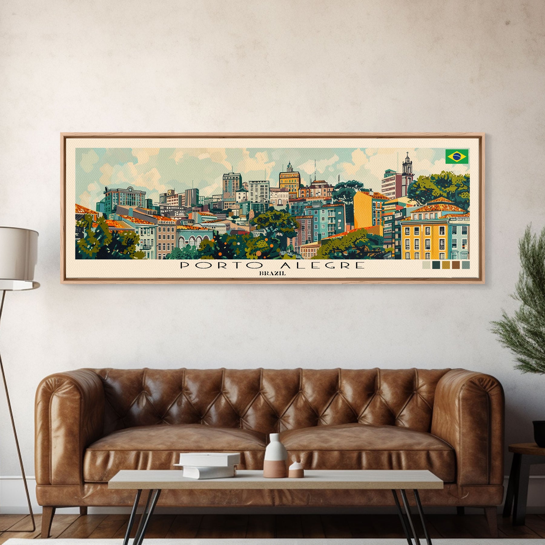 Porto Alegre, Brazil Panoramic Canvas Print, Porto Alegre, Brazil Painting, Brazil Art, Porto Alegre Travel Poster, Travel Art, Housewarming Gift
