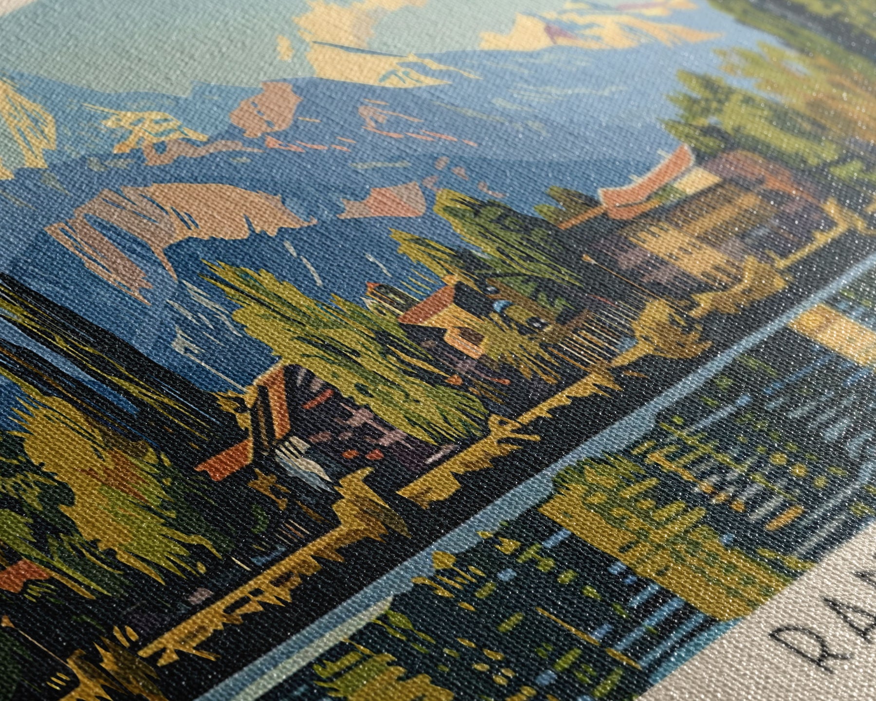 Most of our canvases are made in the USA, with the exception of canvases ordered with the light oak unstained frames, and any large canvases (24x48, 30x60, 16x48 and 20x60) ordered WITH a frame. These are temporarily made in and shipped from Europe, while we try to find a more consistent supplier in the USA.