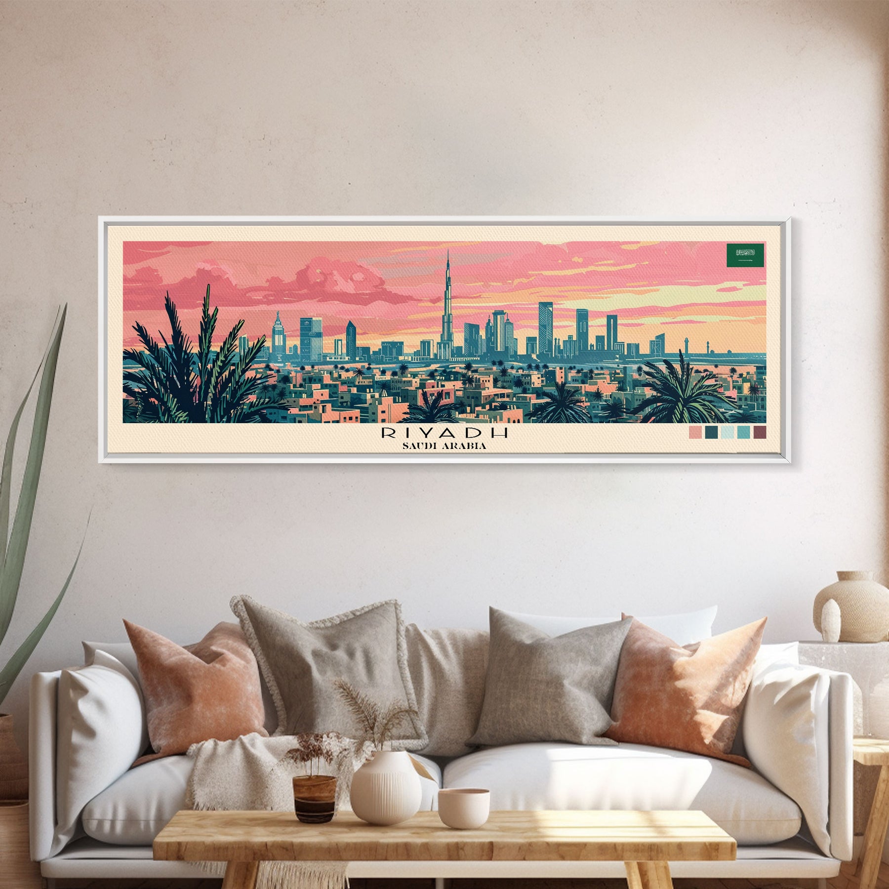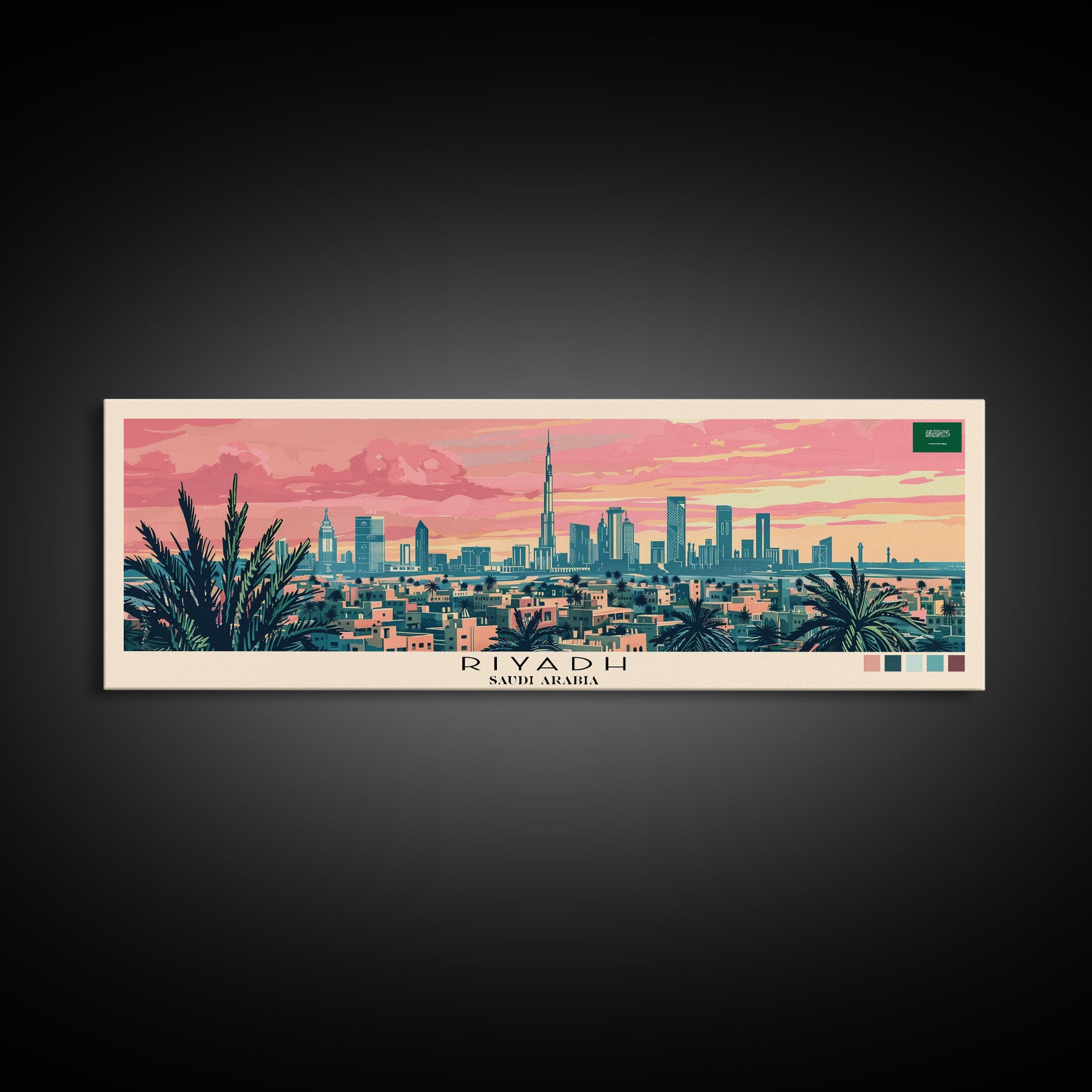 Riyadh, Saudi Arabia Panoramic Canvas Print, Riyadh, Saudi Arabia Painting, Saudi Arabia Art, Riyadh Travel Poster, Travel Art, Housewarming Gift