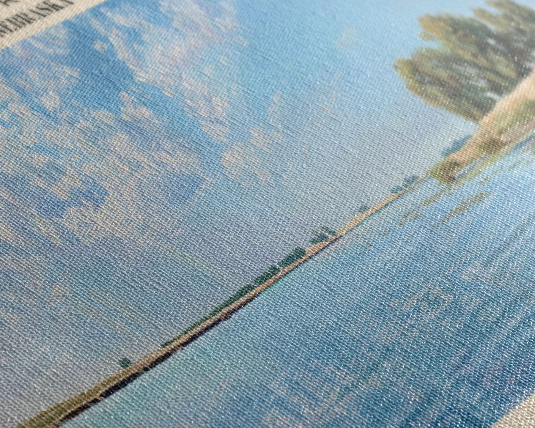 Most of our canvases are made in the USA, with the exception of canvases ordered with the light oak unstained frames, and any large canvases (24x48, 30x60, 16x48 and 20x60) ordered WITH a frame. These are temporarily made in and shipped from Europe, while we try to find a more consistent supplier in the USA.