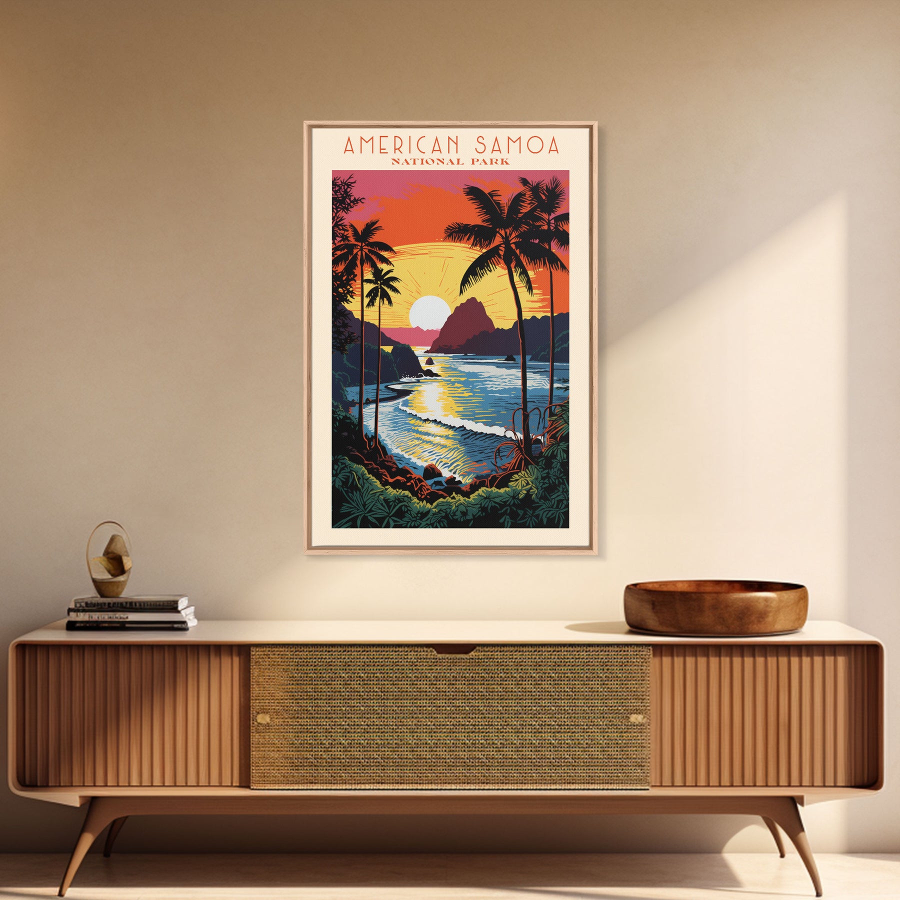 American Samoa National Park, Framed Wall Art Canvas Print, Travel Poster, Travel Art, Roadtrip Decor, Cool Wall Art, Retro State Park Art