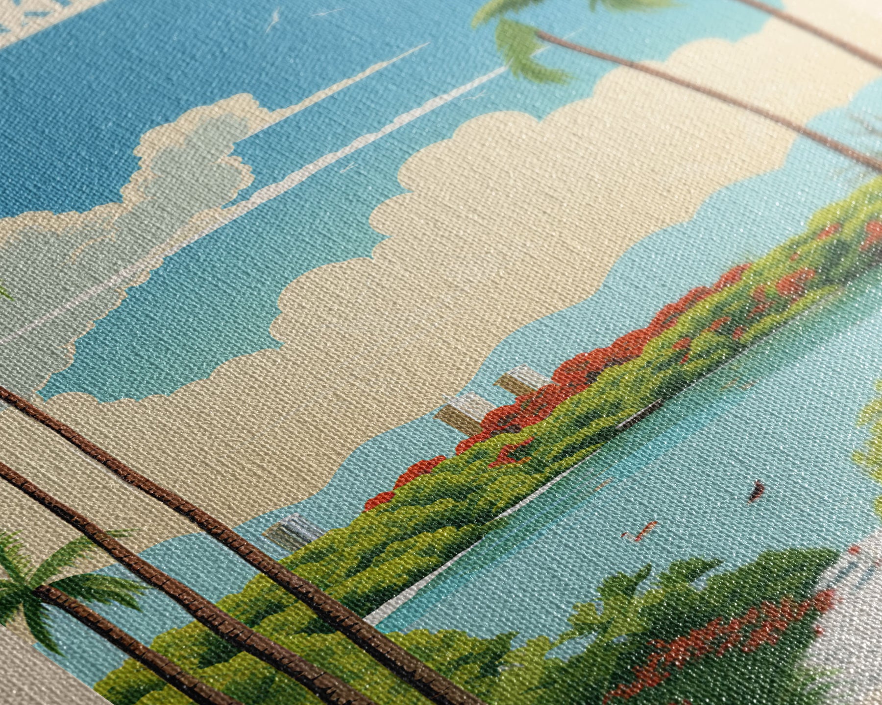 Most of our canvases are made in the USA, with the exception of canvases ordered with the light oak unstained frames, and any large canvases (24x48, 30x60, 16x48 and 20x60) ordered WITH a frame. These are temporarily made in and shipped from Europe, while we try to find a more consistent supplier in the USA.