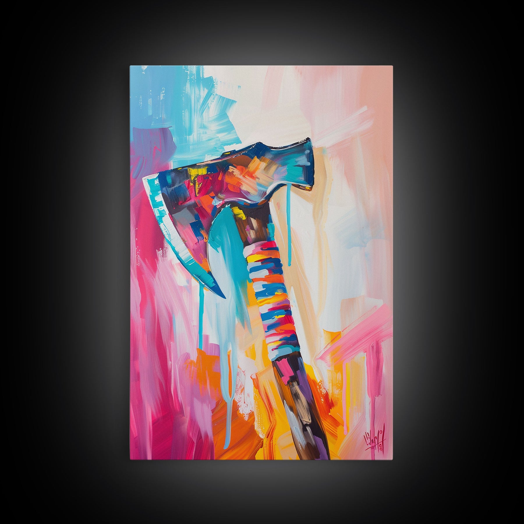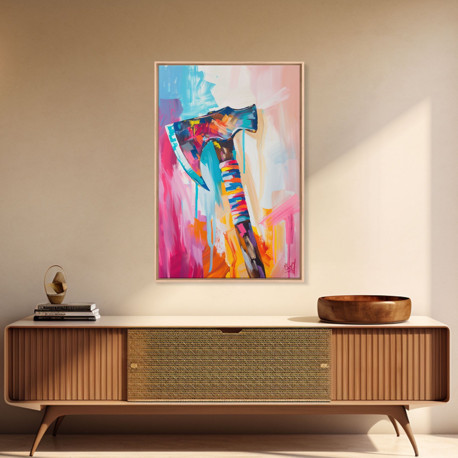 Abstract Colorful Axe Painting - Framed Canvas Print, Unique Living Room Decor, Bold Wall Art, Vibrant Home Decor