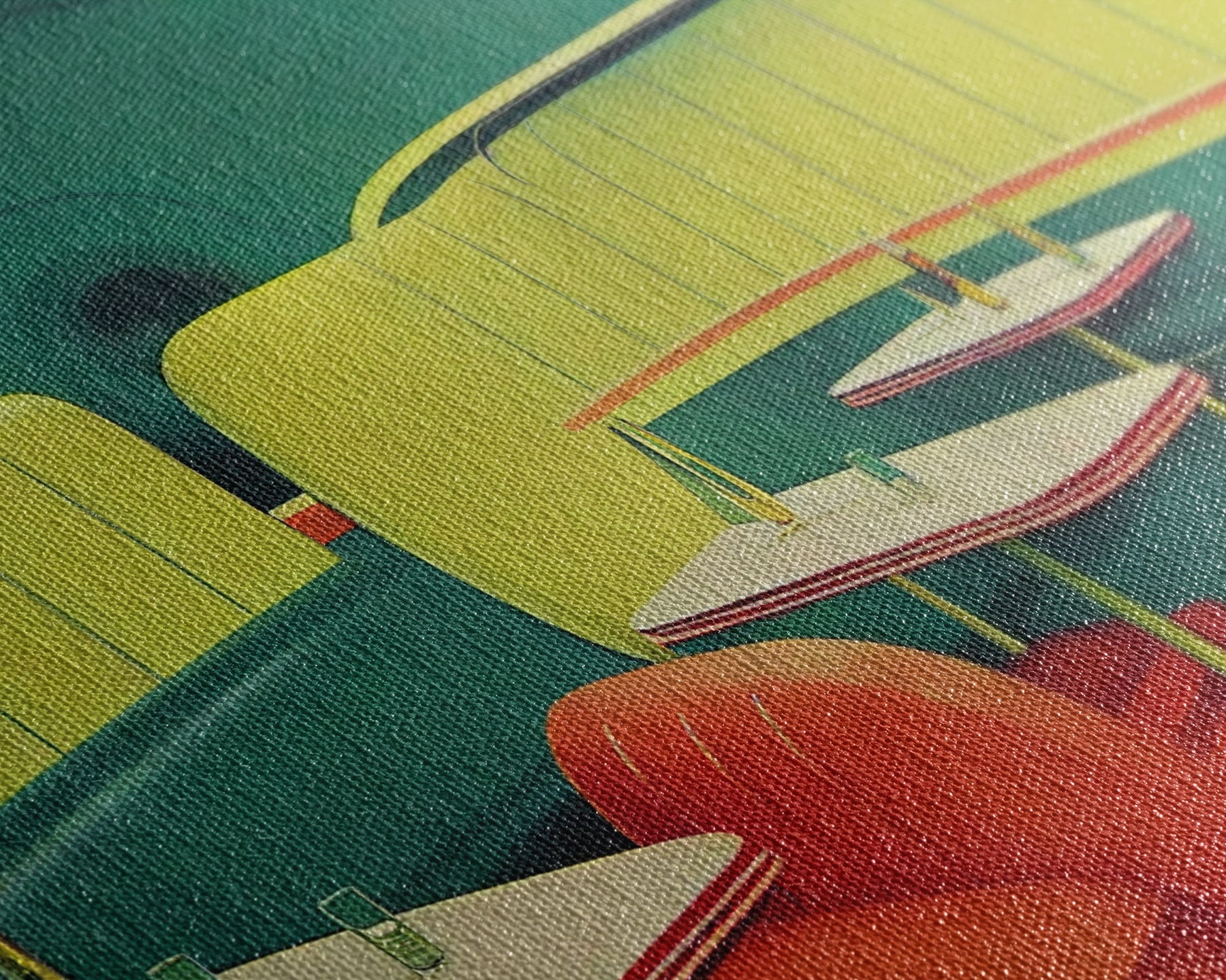 Most of our canvases are made in the USA, with the exception of canvases ordered with the light oak unstained frames, and any large canvases (24x48, 30x60, 16x48 and 20x60) ordered WITH a frame. These are temporarily made in and shipped from Europe, while we try to find a more consistent supplier in the USA.