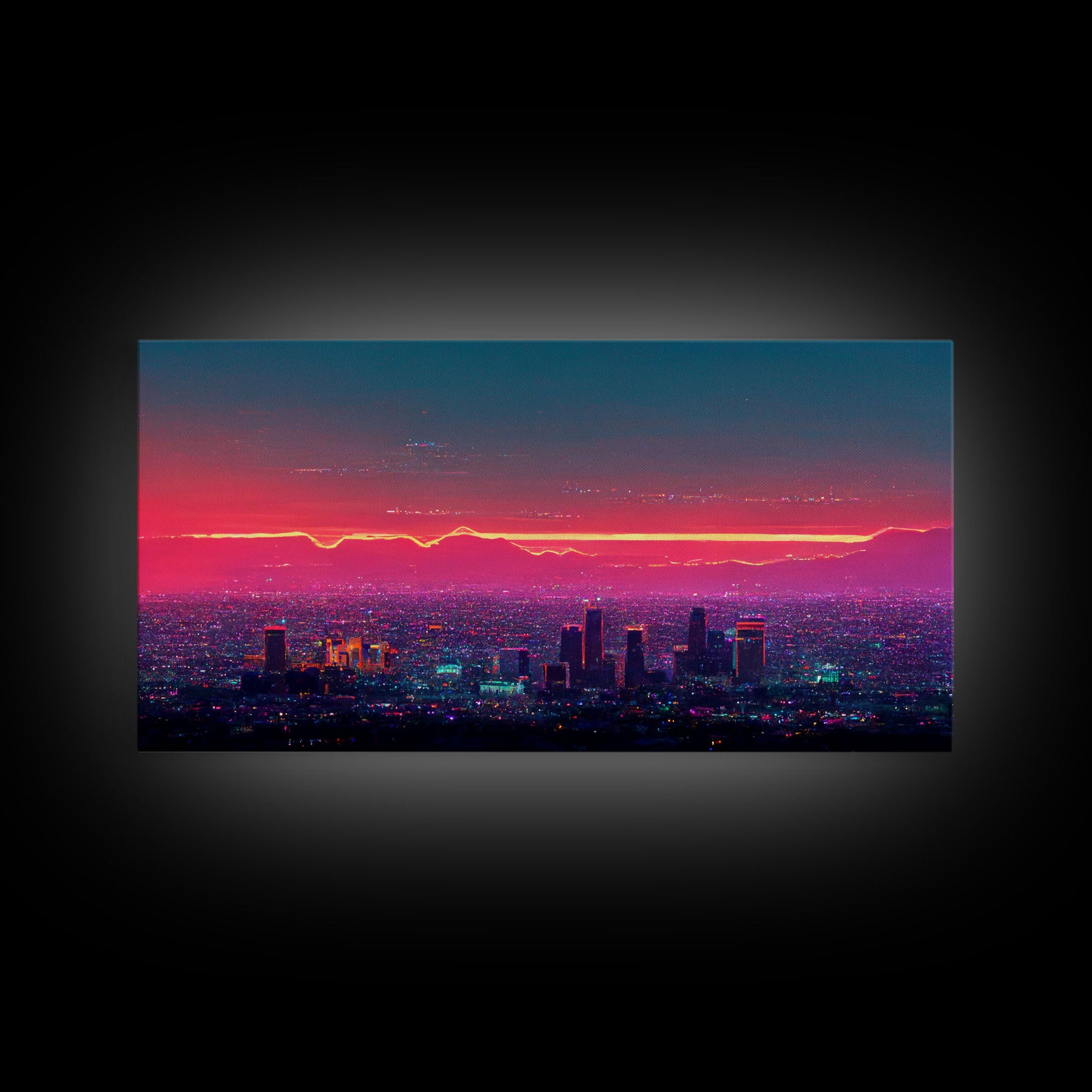 Los Angeles Wall Art, California at sunset canvas print, outrun style, vapor wave, synth wave sunset, ready to hang wall art