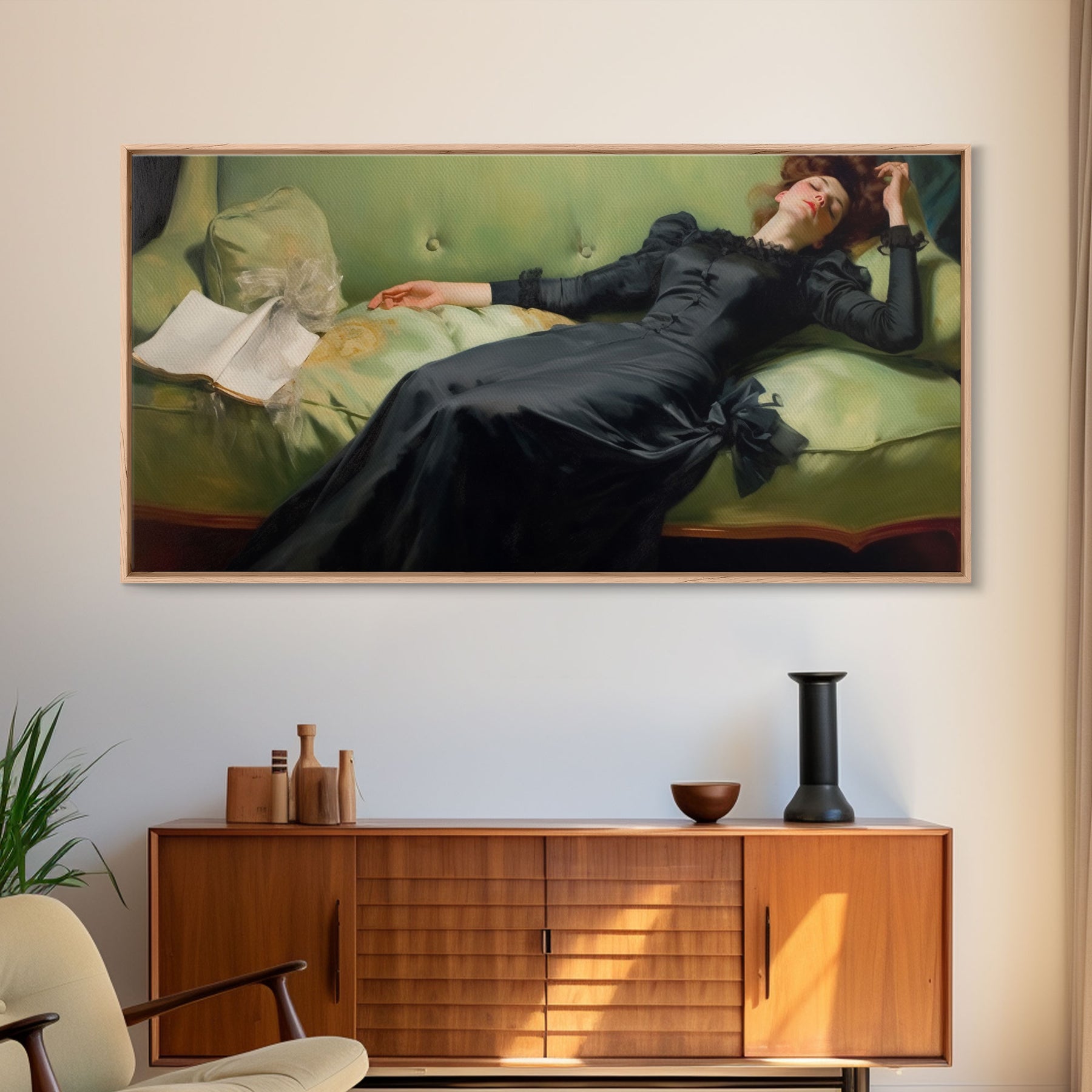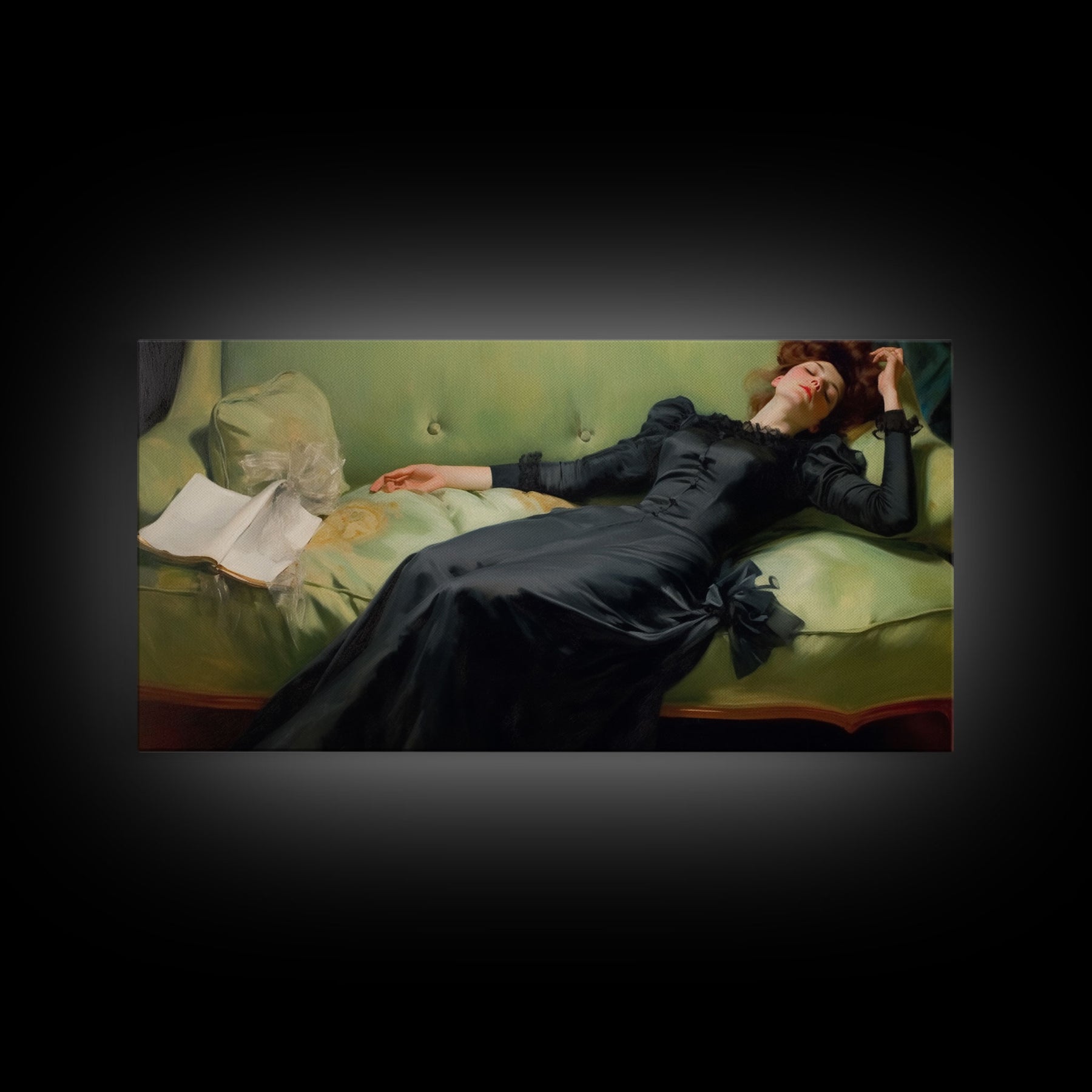 One Of Those Days, Conked Out On The Couch, Decadent Young Woman, Gilded Age Inspired Victorian Female Figure Wall Art