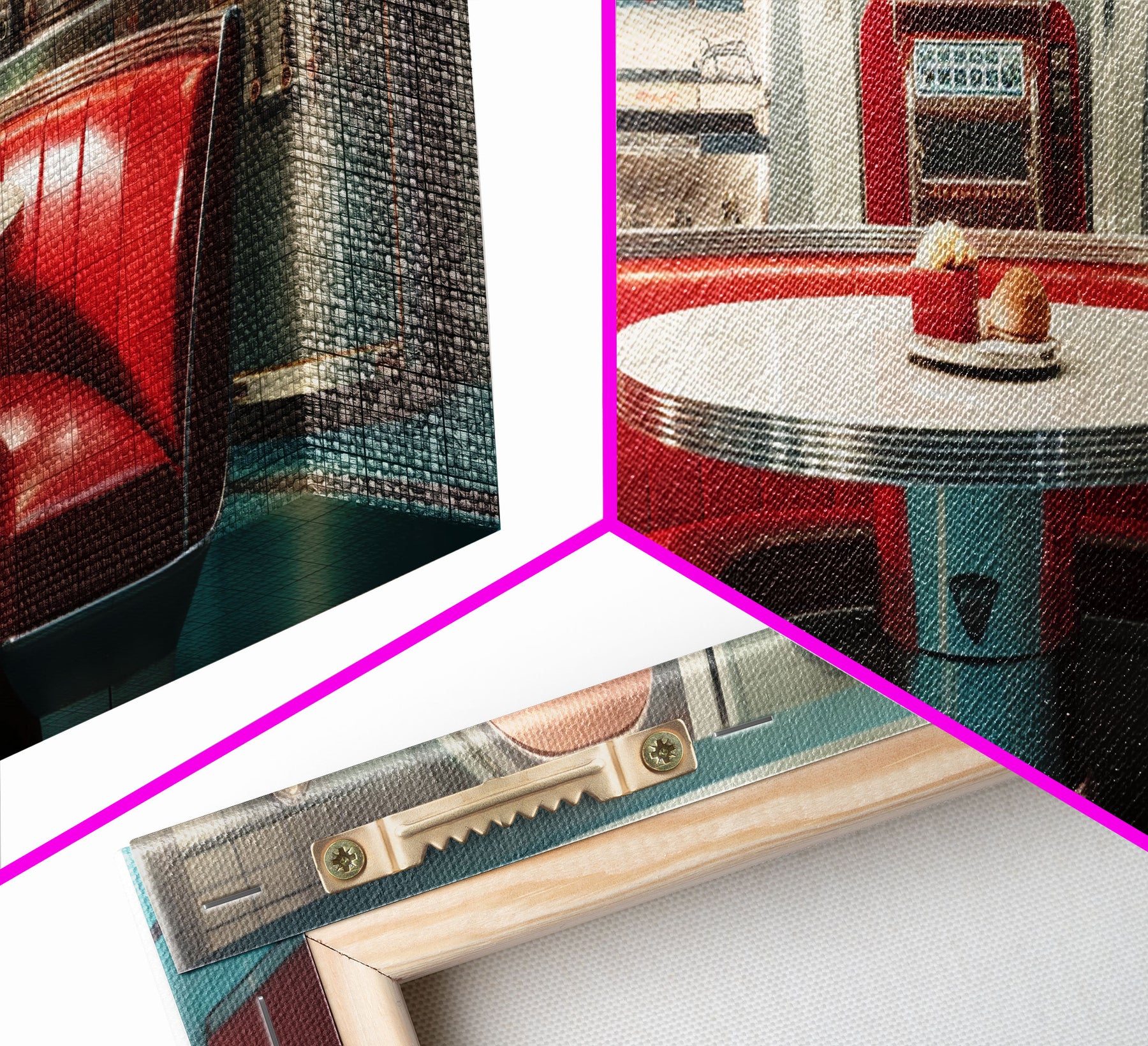 Hello and thank you for taking the time to view our modern high quality giclée artwork! Printed on extremely durable 350 GSM canvas material with ECO friendly archival grade ink, then hand stretched and stapled over premium, FSC certified and shrink resistant frames. Designed and built to last a lifetime.