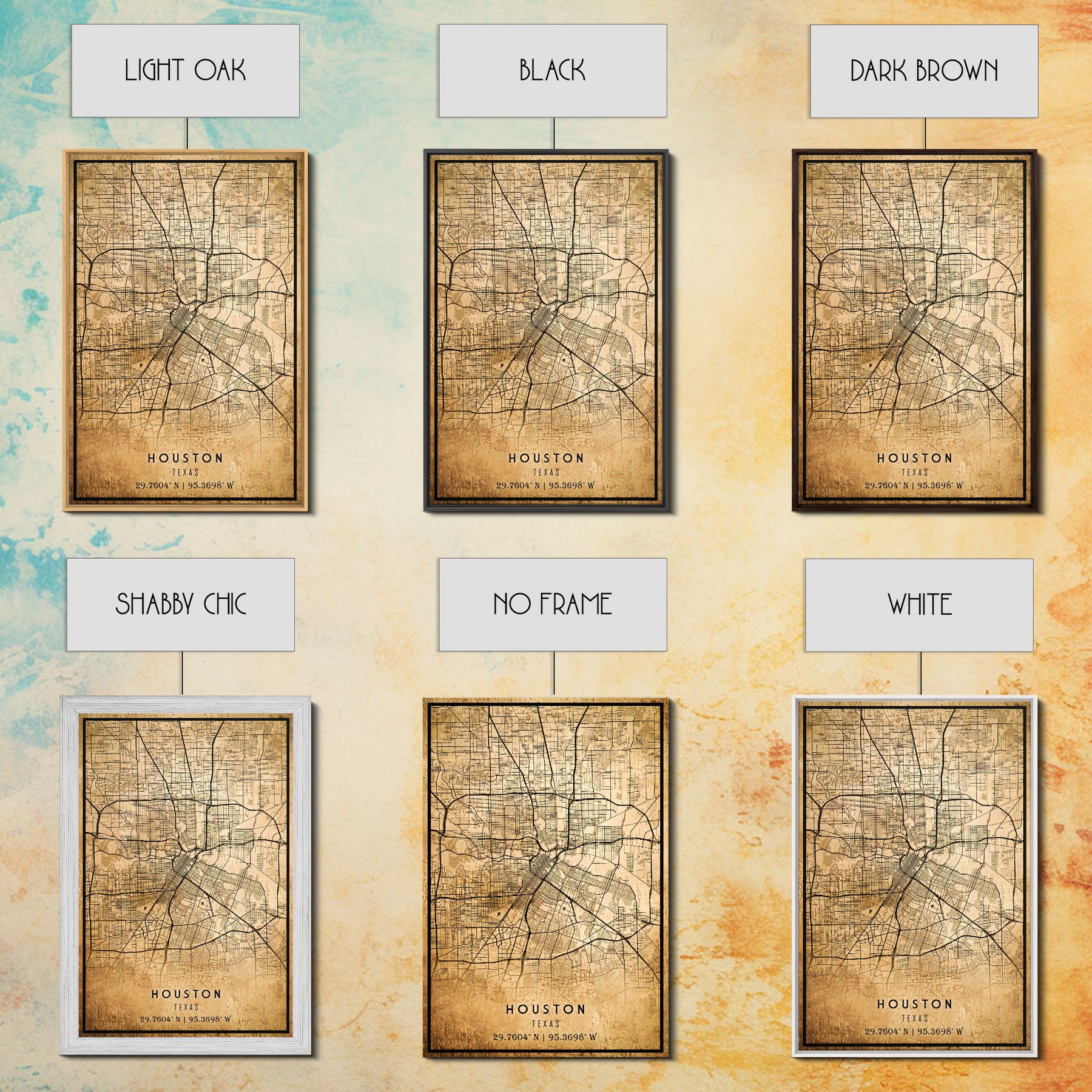 Houston Vintage Map Print, Framed Canvas, Houston Map, Texas Map Art, Houston City Road Map Poster, Vintage Map