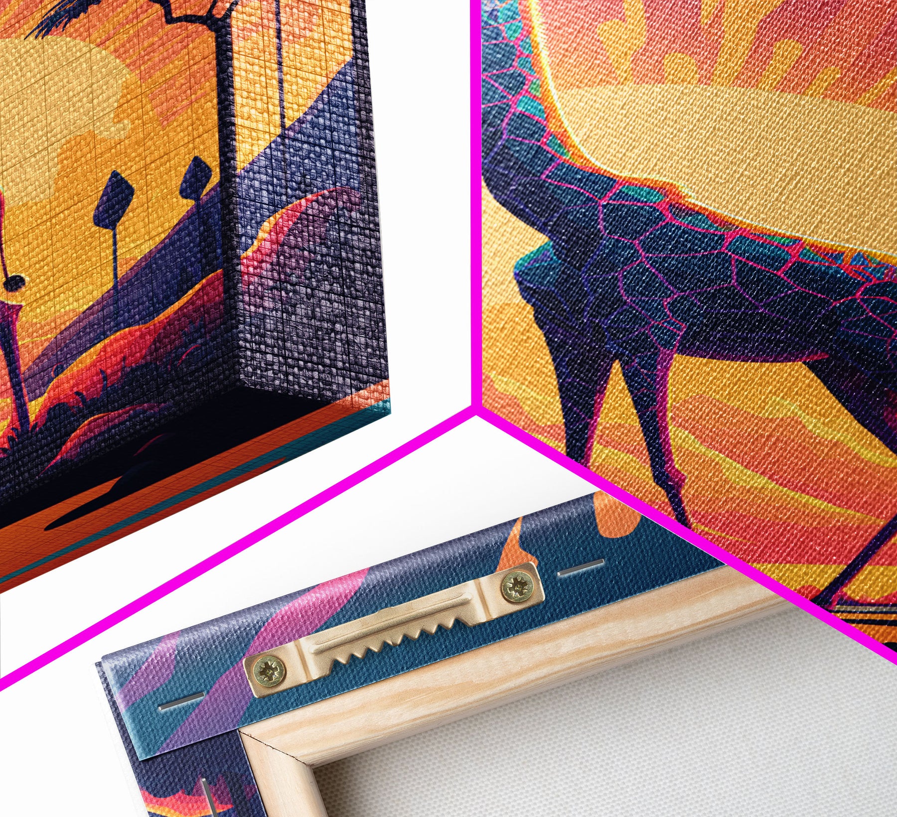 Hello and thank you for taking the time to view our modern high quality giclée artwork! We offer both posters and stretched canvas prints. Our posters are printed on Ultra Matte 60 lb / 230 GSM high quality photo paper, with a thickness of 10 mil. Our canvases are printed on museum grade 350 GSM canvas material with ECO friendly archival grade ink, then hand stretched and stapled over premium, FSC certified and shrink resistant frames. Designed and built to last a lifetime.