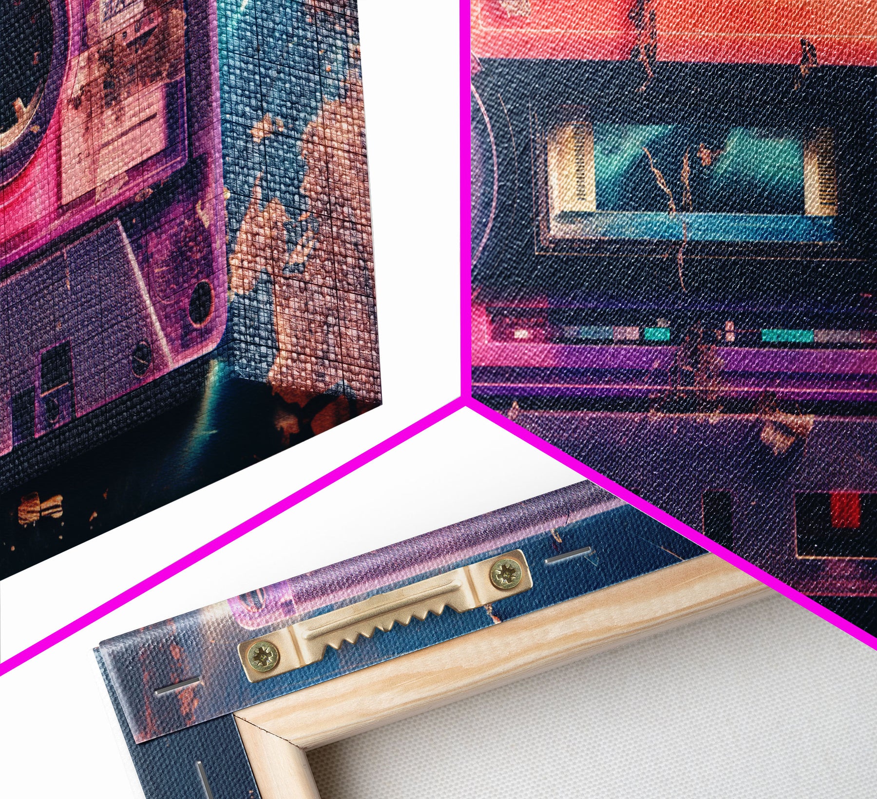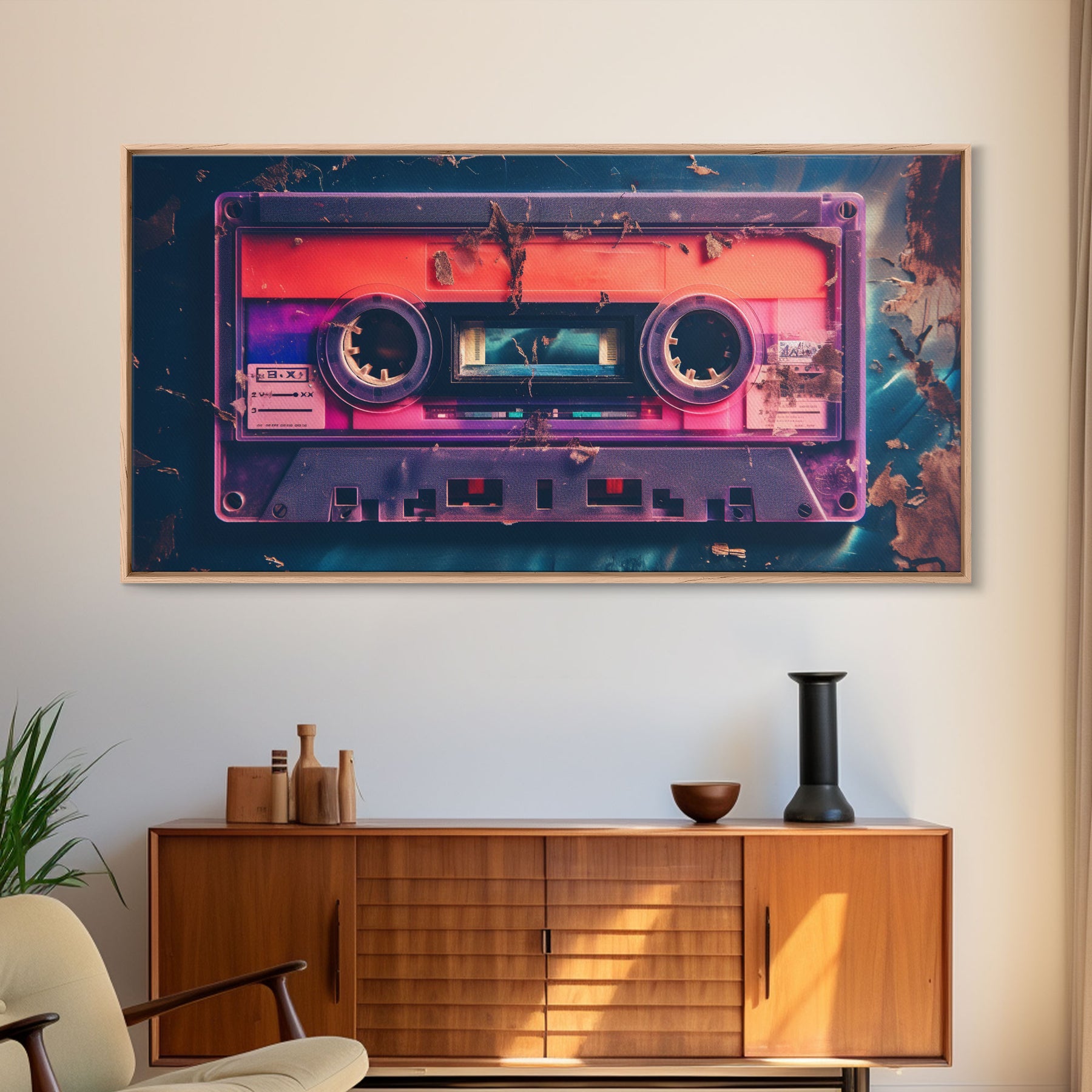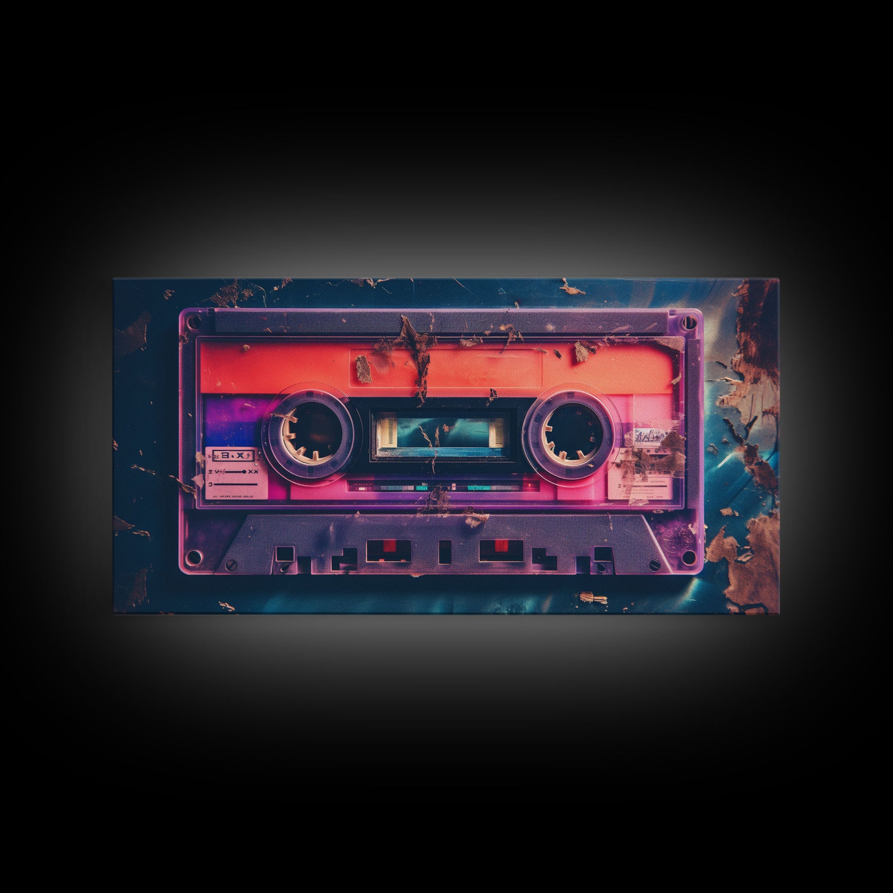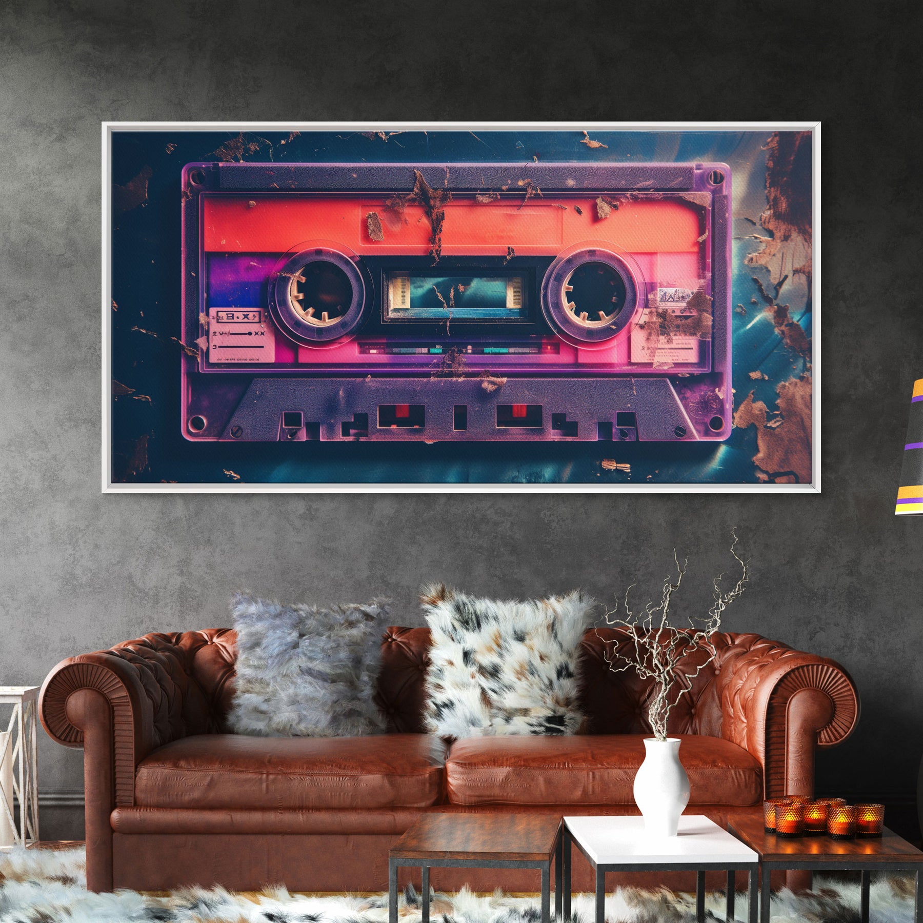 Vaporwave Cassette Tape Wall Art, Framed Canvas Print, 1980s Inspired Home Decor, Retro Art, 80s Decor, Aesthetic Decor