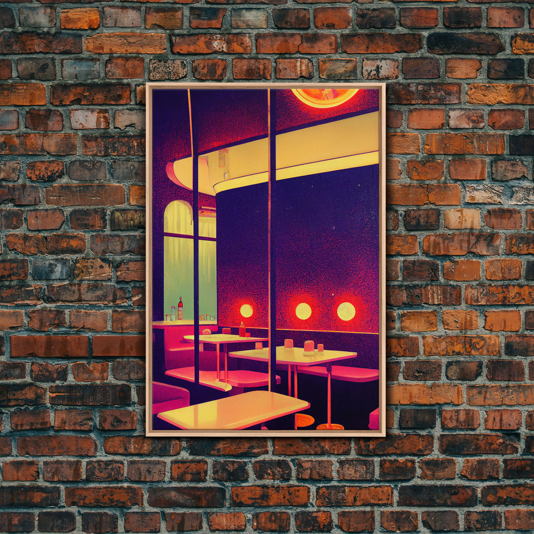 Retro 50s style diner art, vintage style, outrun style art, Framed Canvas Print, Ready To Hang Framed Wall Art, Living Room Wall Hanging