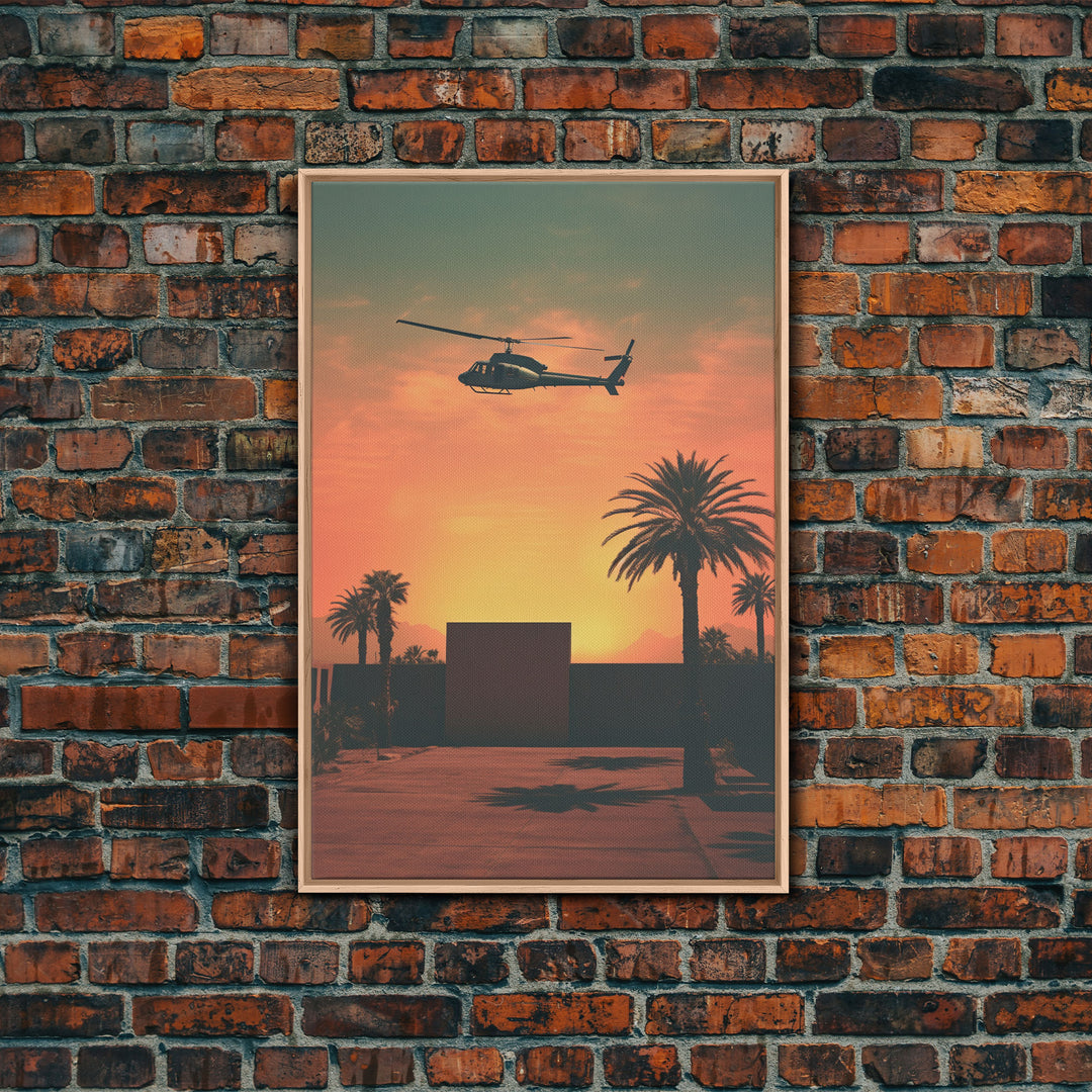 Helicopter, Aviation Wall Art, Lofi Art Print, Canvas Print, Wall Hanging, Portrait Art, Retro Art Print, Pilot Gift, Teen Boy Wall Art