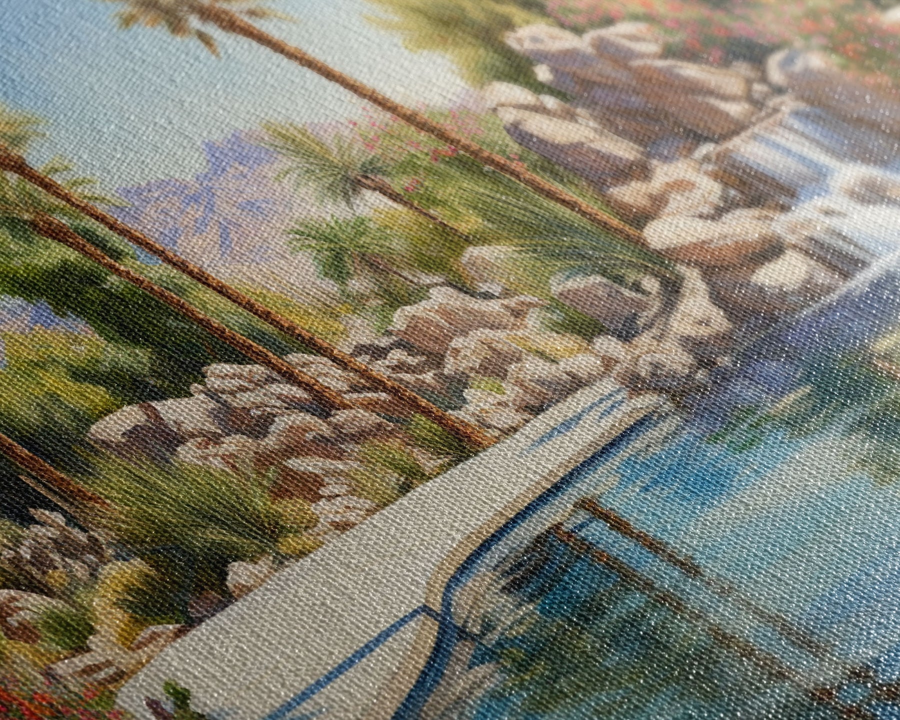 Most of our canvases are made in the USA, with the exception of canvases ordered with the light oak unstained frames, and any large canvases (24x48, 30x60, 16x48 and 20x60) ordered WITH a frame. These are temporarily made in and shipped from Europe, while we try to find a more consistent supplier in the USA.