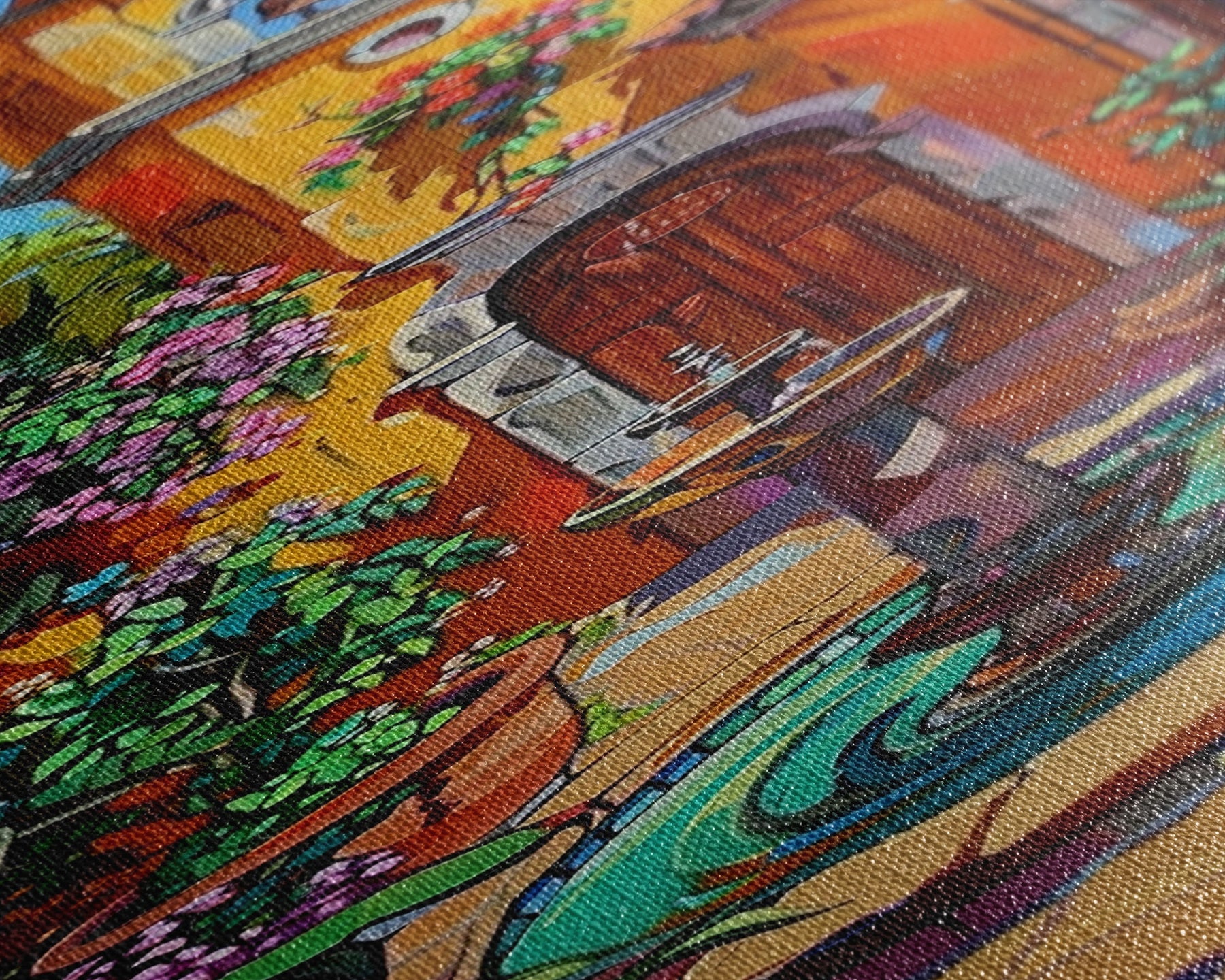 Most of our canvases are made in the USA, with the exception of canvases ordered with the light oak unstained frames, and any large canvases (24x48, 30x60, 16x48 and 20x60) ordered WITH a frame. These are temporarily made in and shipped from Europe, while we try to find a more consistent supplier in the USA.