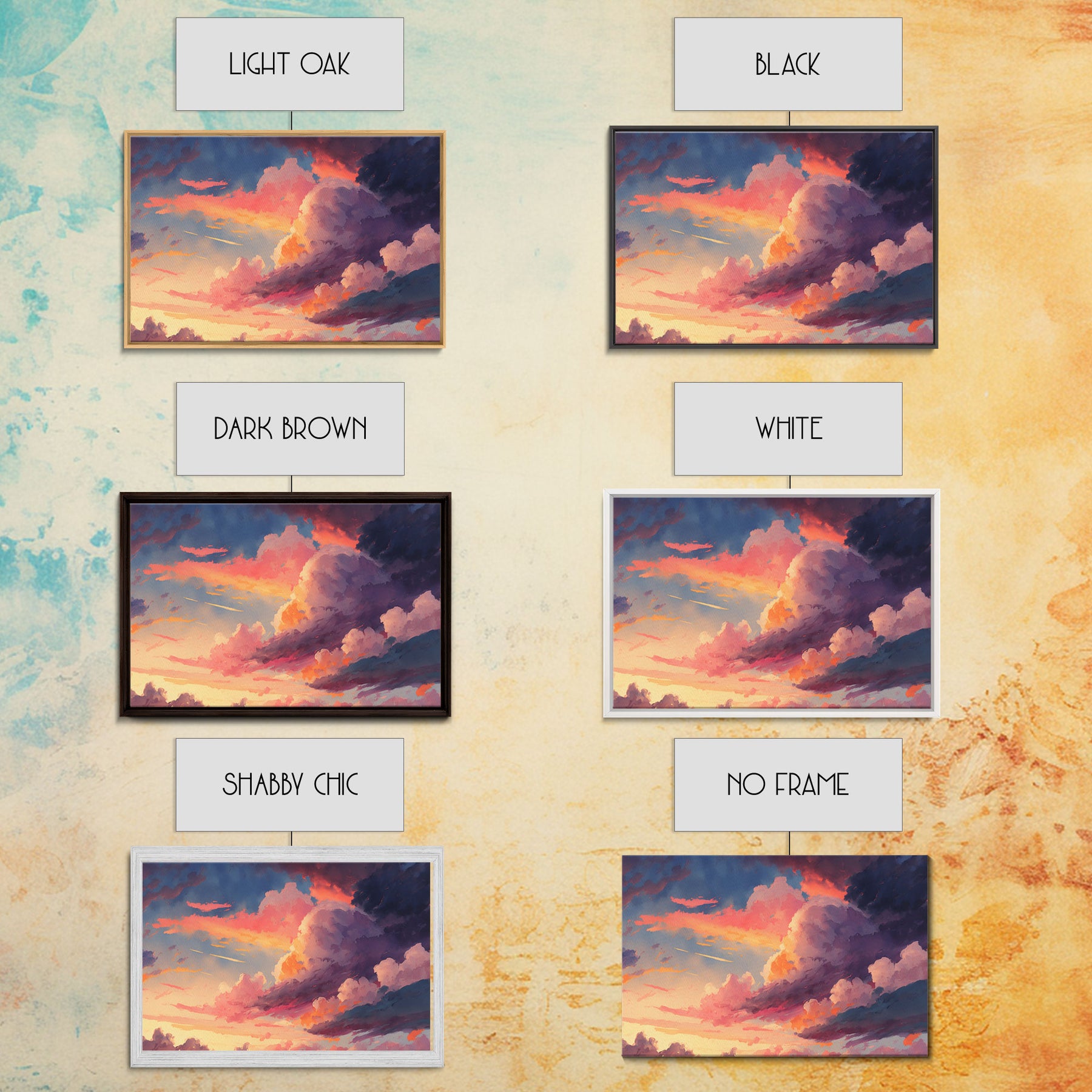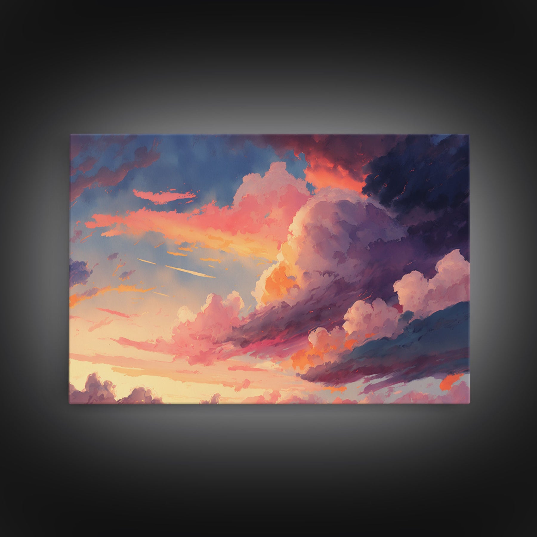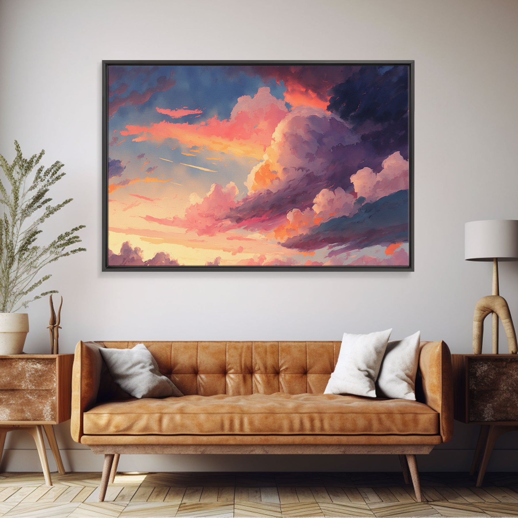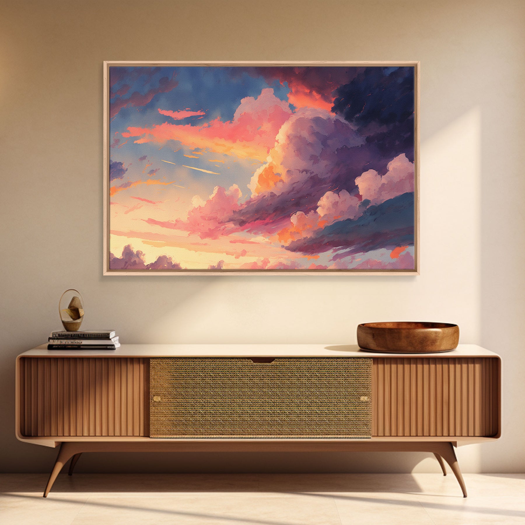 Pink Clouds Sunset Art | Framed Canvas Print | Vintage Style Painting Print | Whimsical Boho Decor | Modern Farmhouse Art