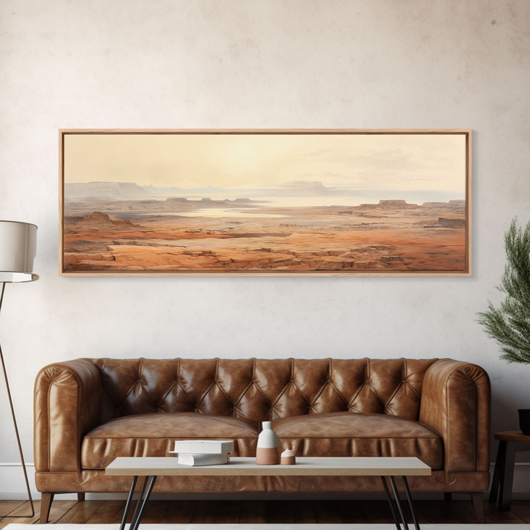 Arizona Desert, Canvas Wall Art, National Park Poster, Extra Large Horizontal Print, Panoramic Watercolor Minimalist Landscape Art