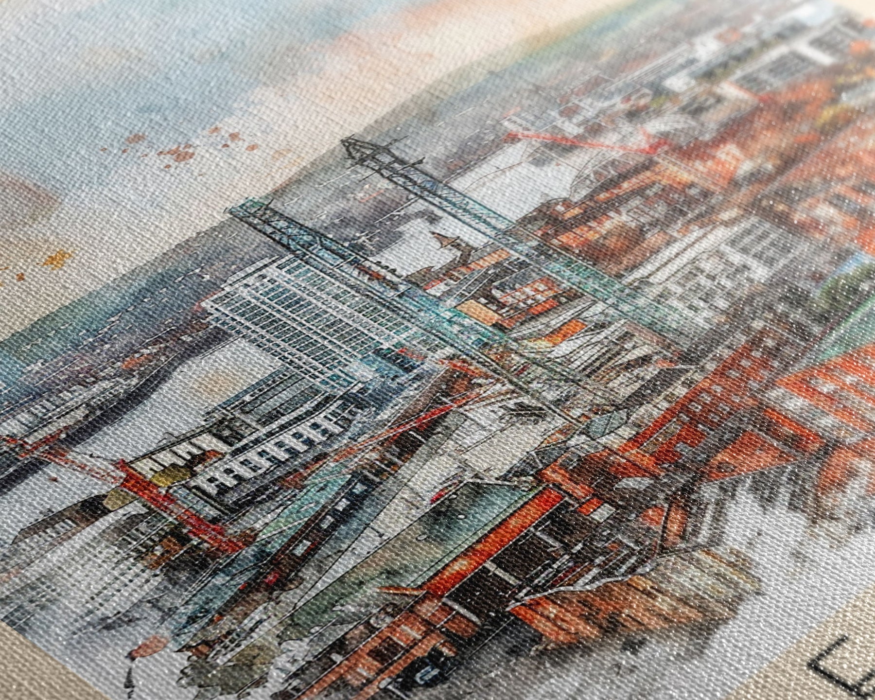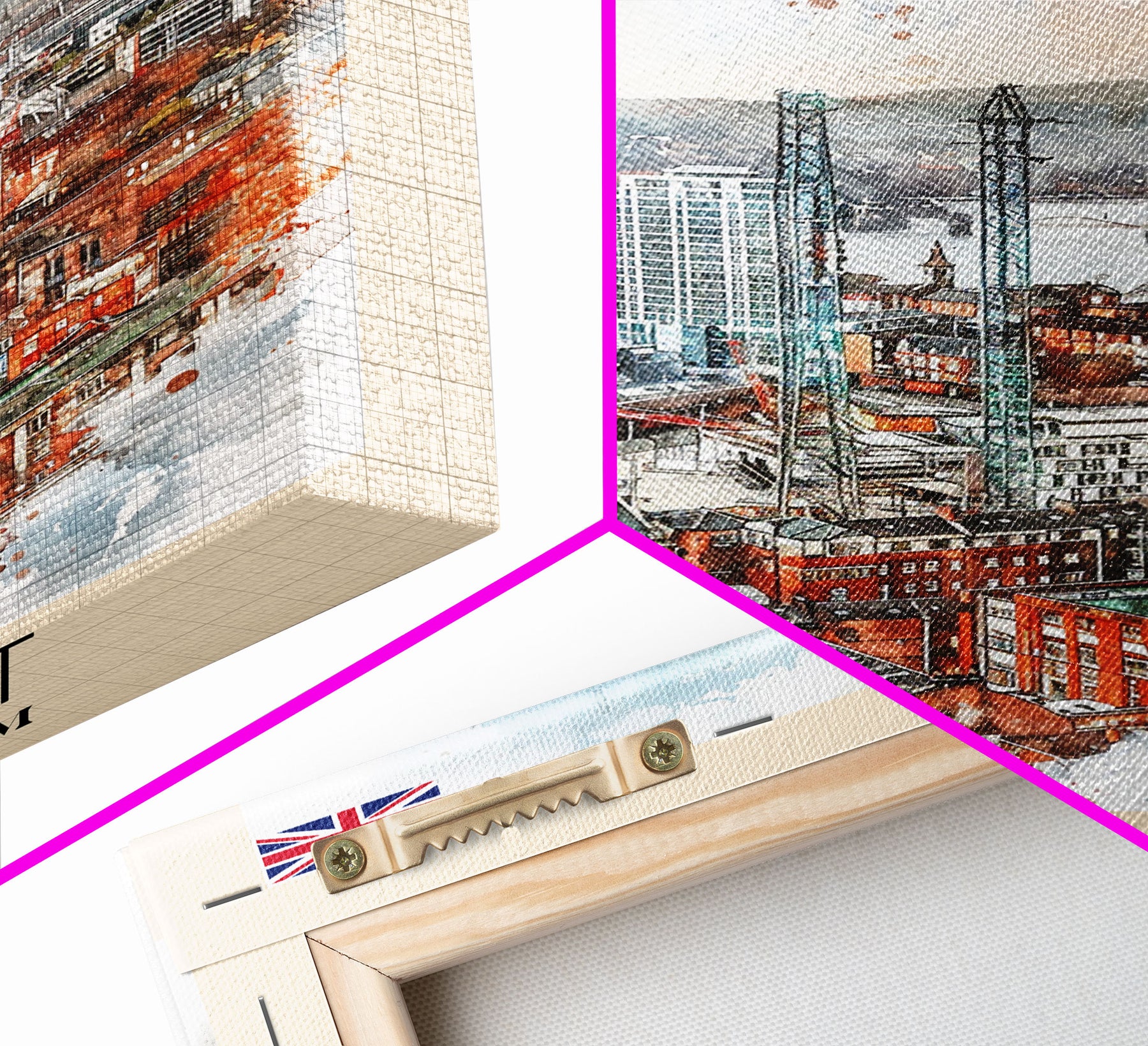 Belfast United Kingdom Travel Poster Framed Canvas Print, Wall Art, Living Room Art, Watercolor Painting, Original Art
