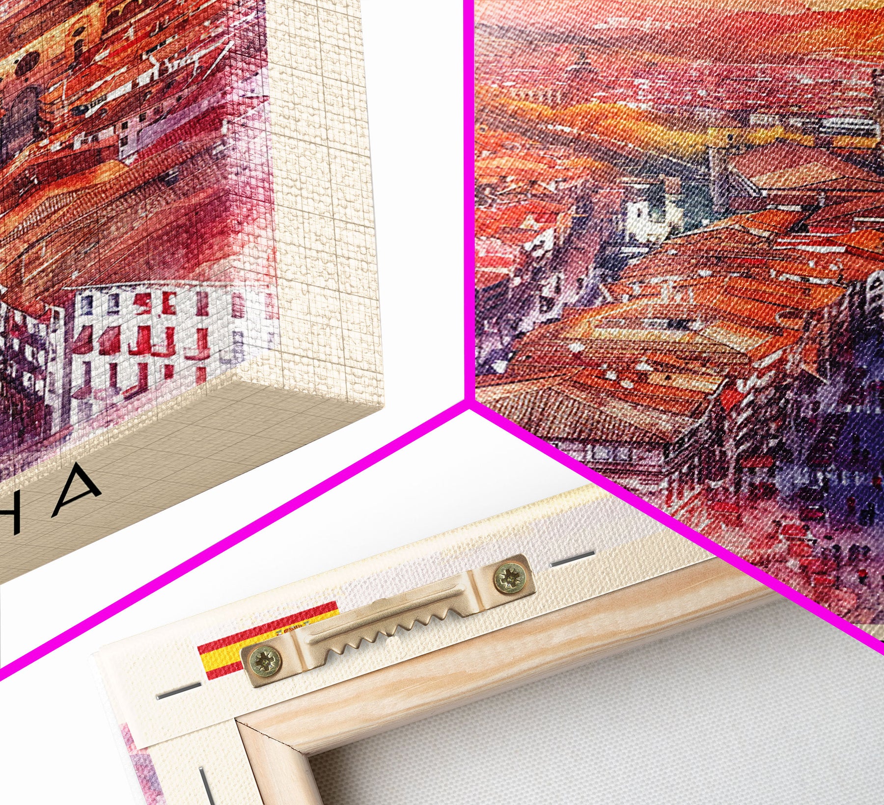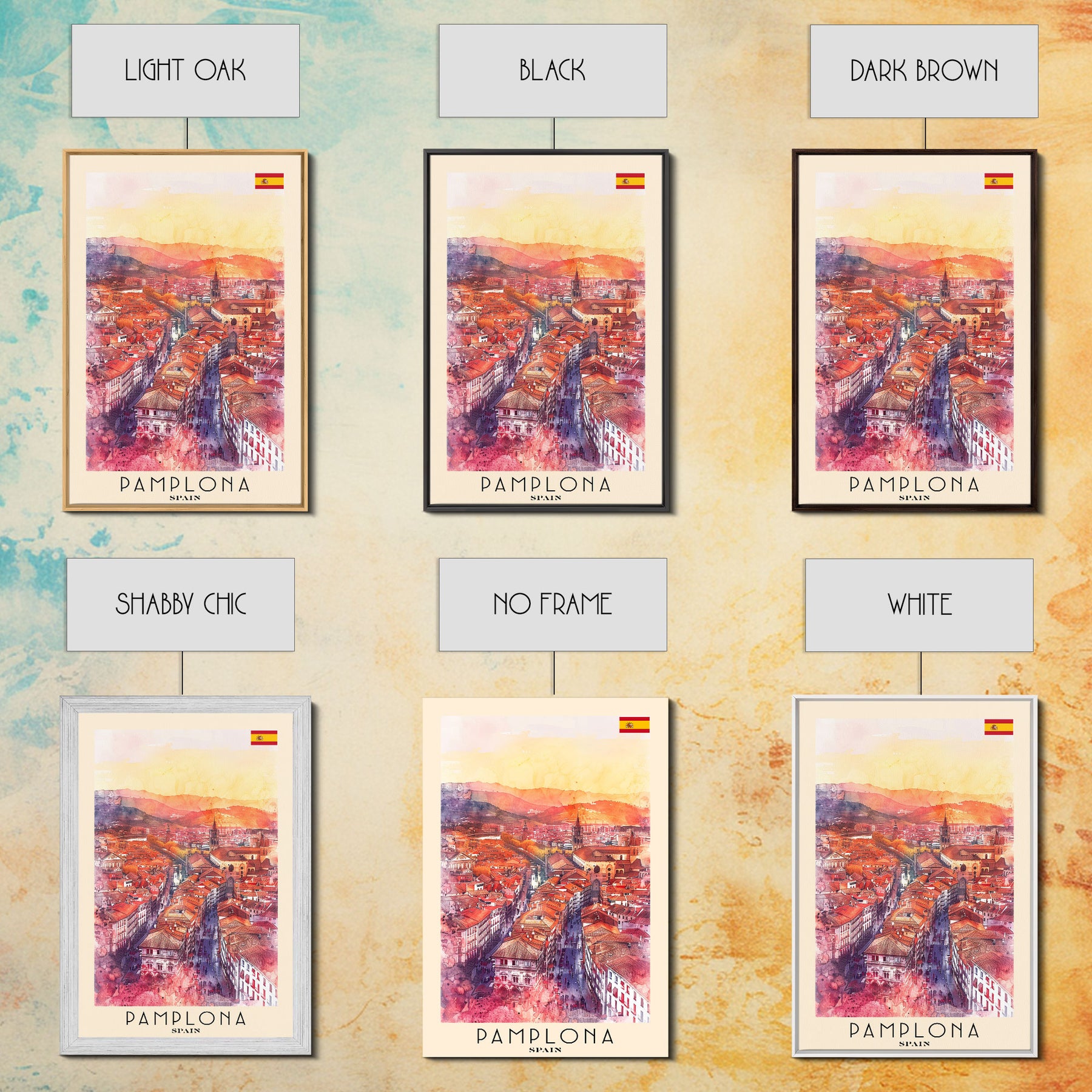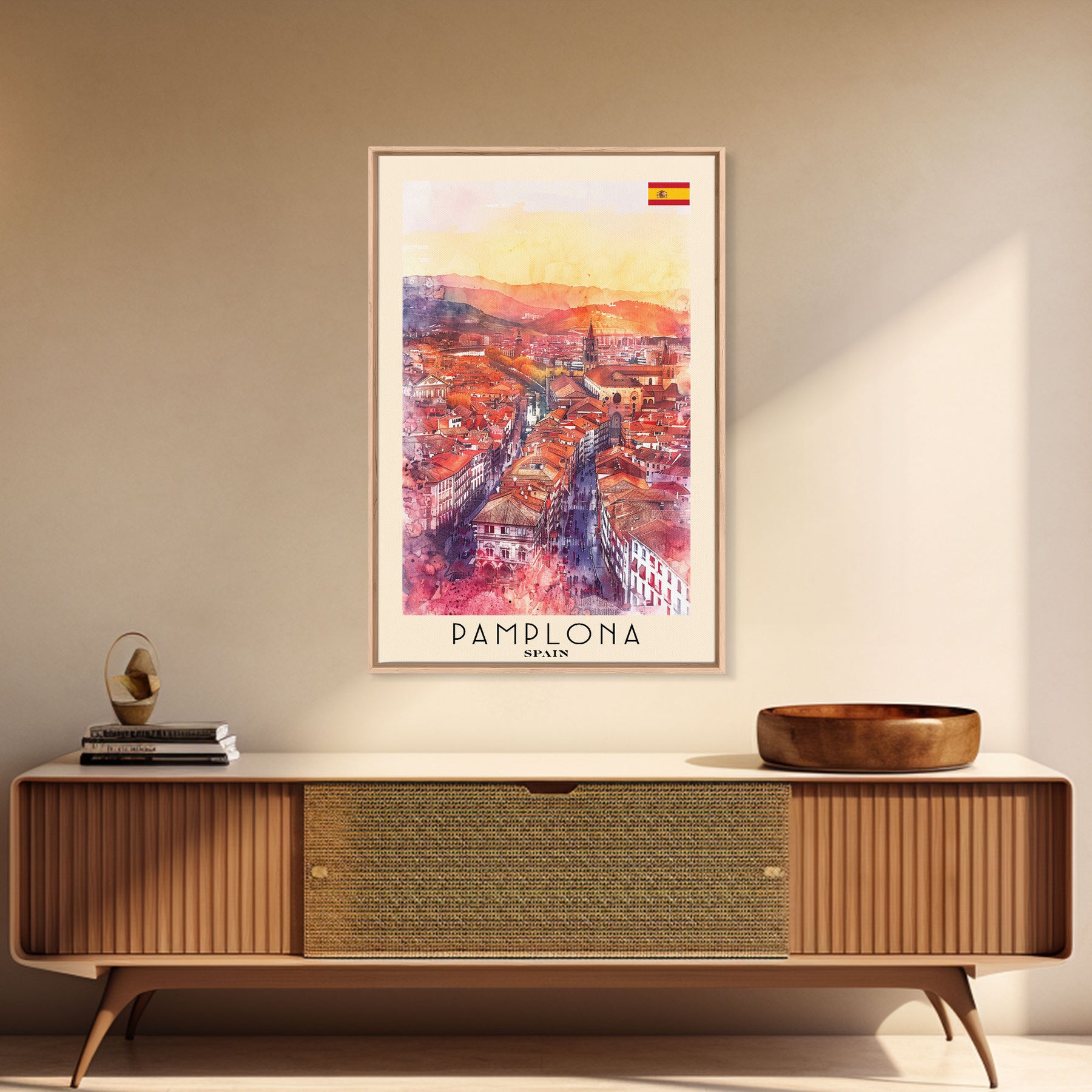Pamplona Spain Travel Poster Framed Canvas Print, Watercolor Painting, Urban Wall Art, Home Decor, Spanish Architecture, Classic Art