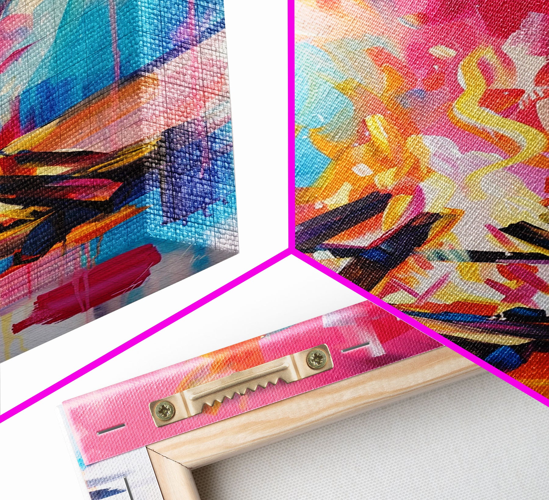 Hello and thank you for taking the time to view our modern high quality giclée artwork! We offer both posters and stretched canvas prints. Our posters are printed on Ultra Matte 60 lb / 230 GSM high quality photo paper, with a thickness of 10 mil. Our canvases are printed on museum grade 350 GSM canvas material with ECO friendly archival grade ink, then hand stretched and stapled over premium, FSC certified and shrink resistant frames. Designed and built to last a lifetime.