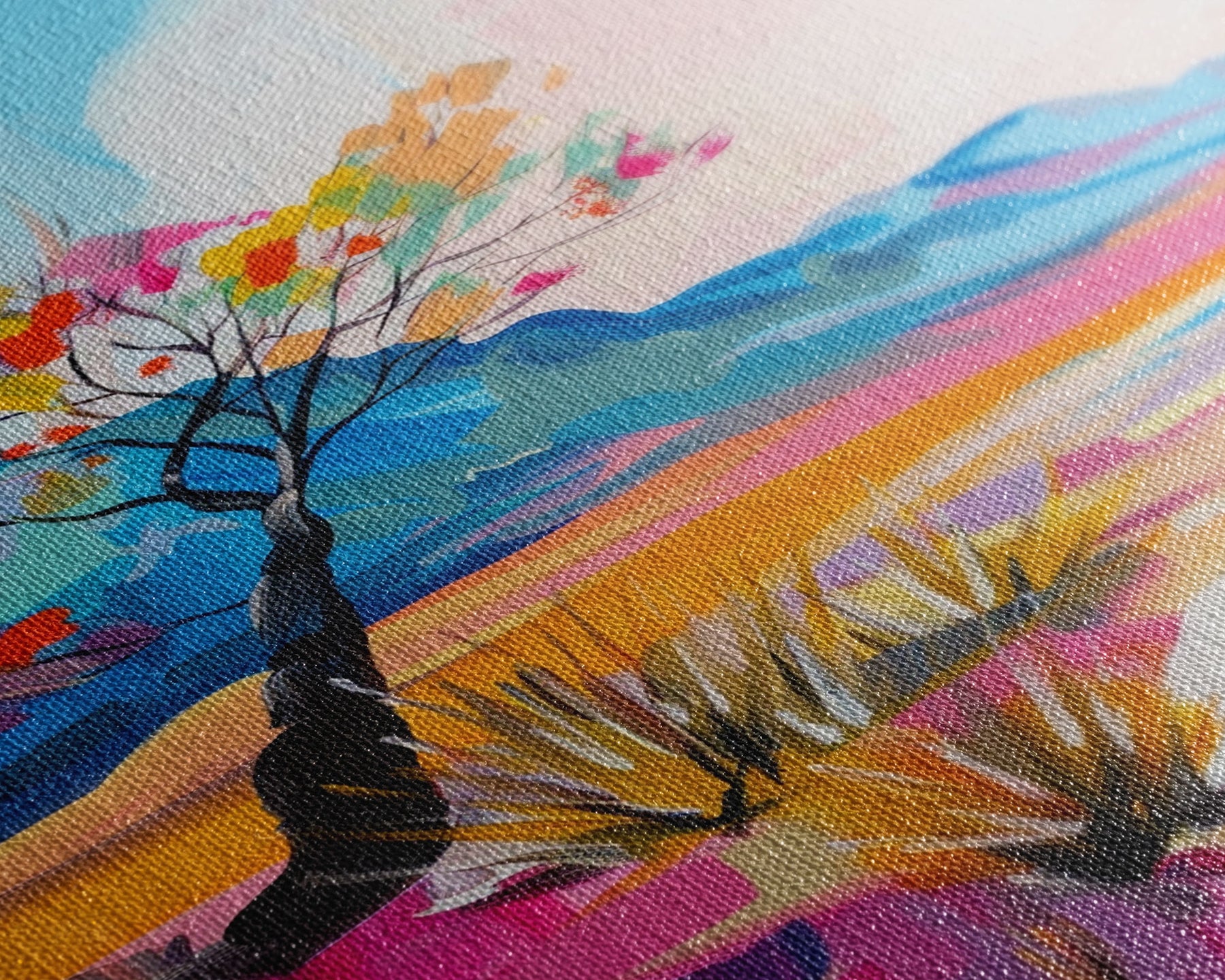 Most of our canvases are made in the USA, with the exception of canvases ordered with the light oak unstained frames, and any large canvases (24x48, 30x60, 16x48 and 20x60) ordered WITH a frame. These are temporarily made in and shipped from Europe, while we try to find a more consistent supplier in the USA.