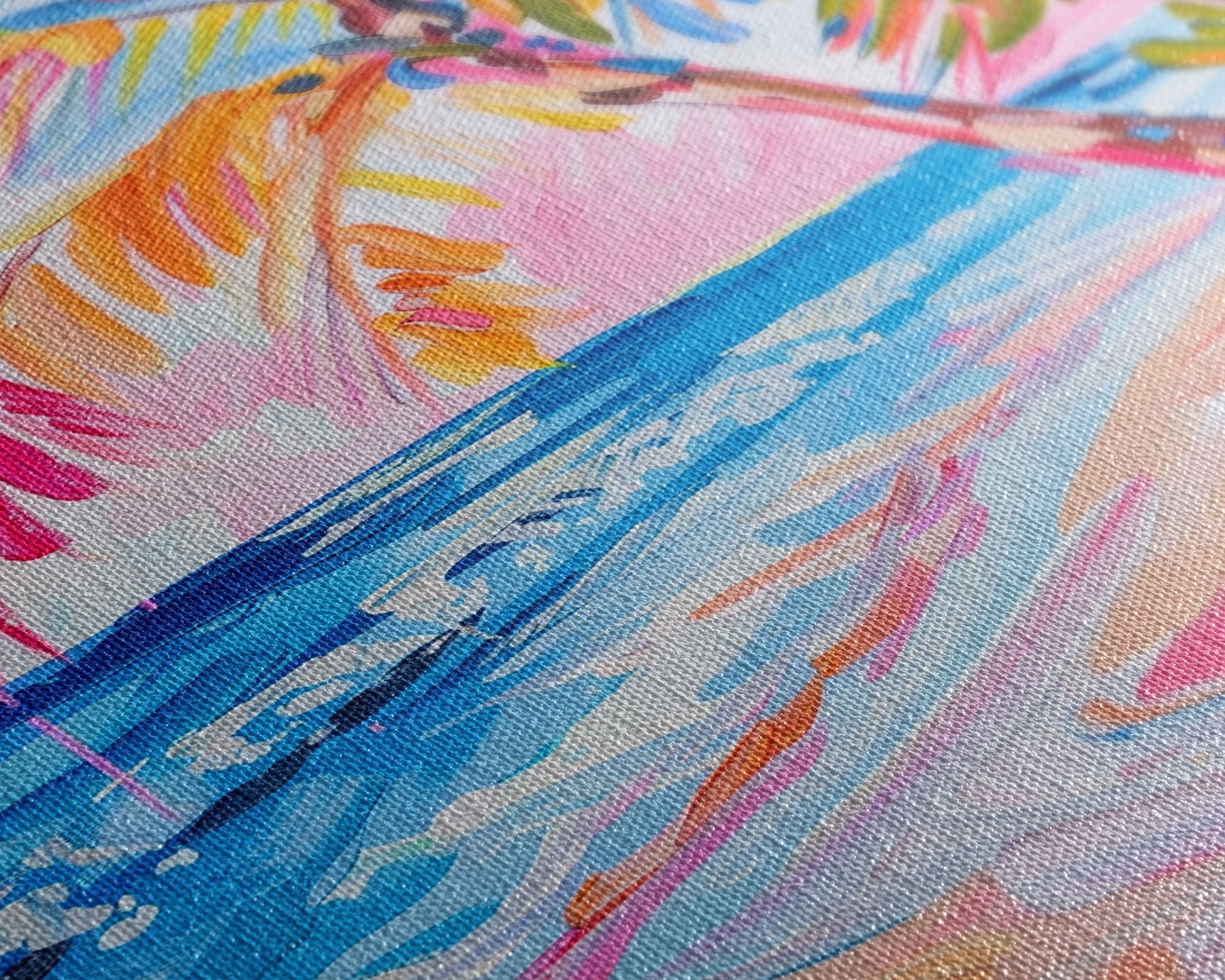 Most of our canvases are made in the USA, with the exception of canvases ordered with the light oak unstained frames, and any large canvases (24x48, 30x60, 16x48 and 20x60) ordered WITH a frame. These are temporarily made in and shipped from Europe, while we try to find a more consistent supplier in the USA.