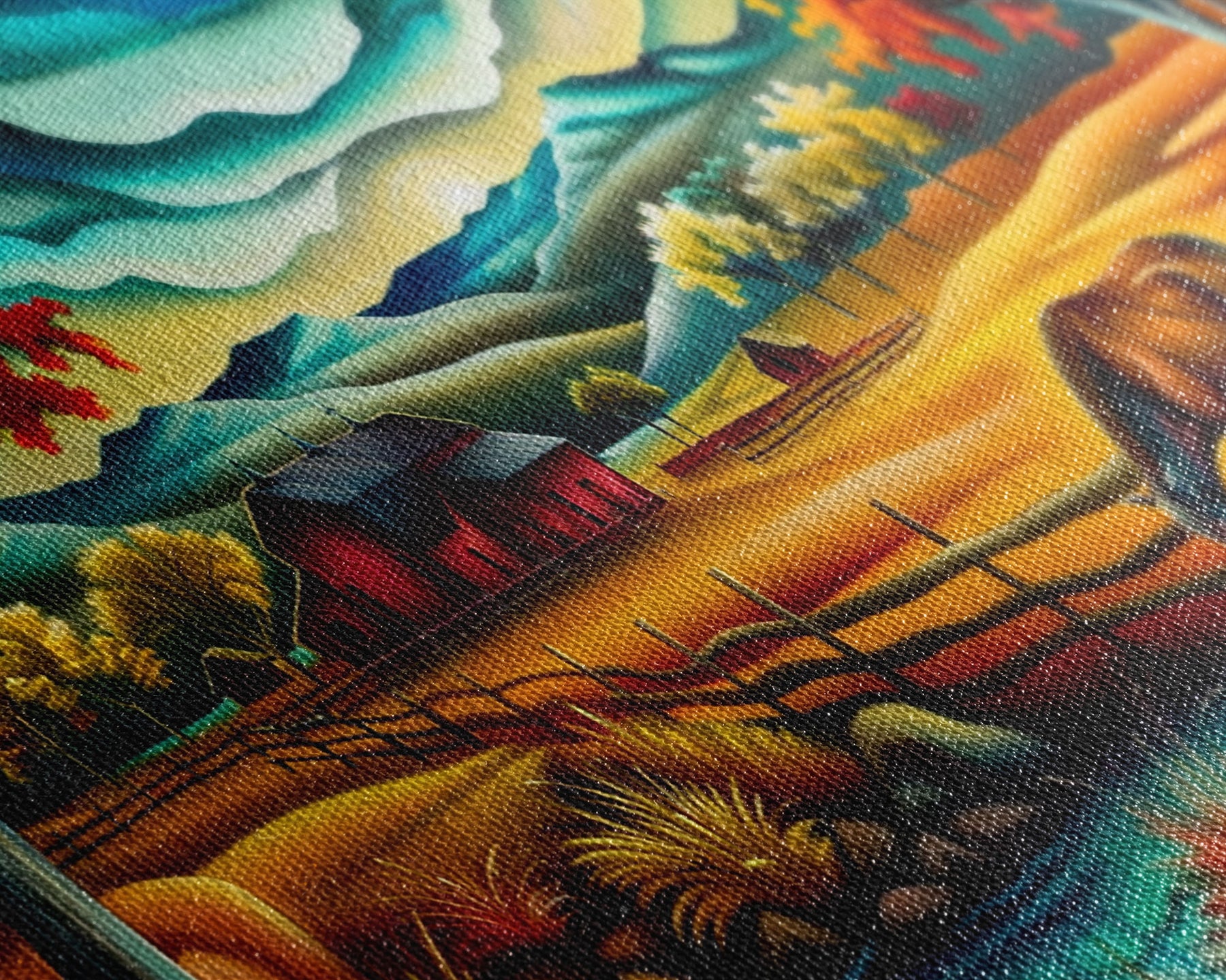 Most of our canvases are made in the USA, with the exception of canvases ordered with the light oak unstained frames, and any large canvases (24x48, 30x60, 16x48 and 20x60) ordered WITH a frame. These are temporarily made in and shipped from Europe, while we try to find a more consistent supplier in the USA.