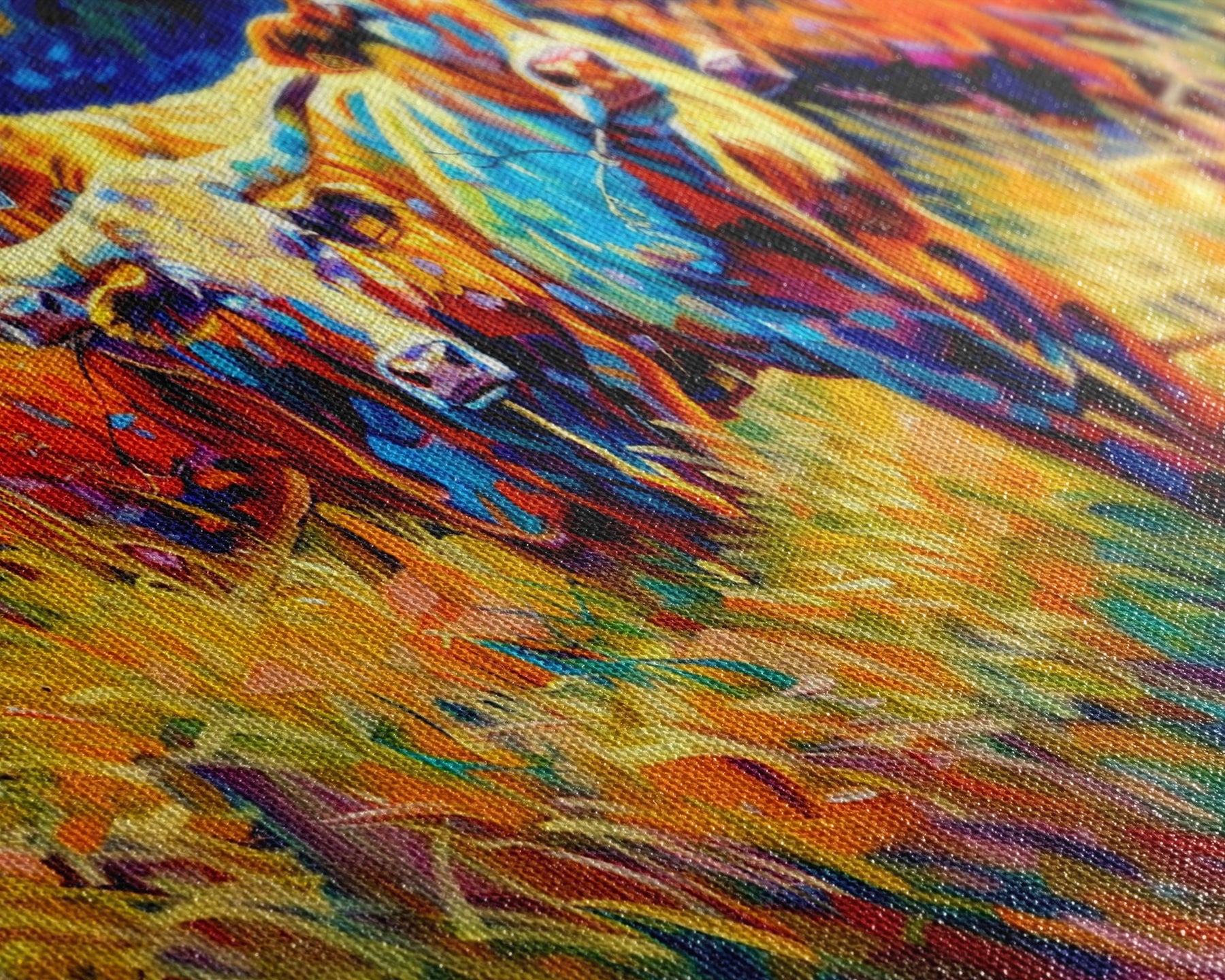 Most of our canvases are made in the USA, with the exception of canvases ordered with the light oak unstained frames, and any large canvases (24x48, 30x60, 16x48 and 20x60) ordered WITH a frame. These are temporarily made in and shipped from Europe, while we try to find a more consistent supplier in the USA.