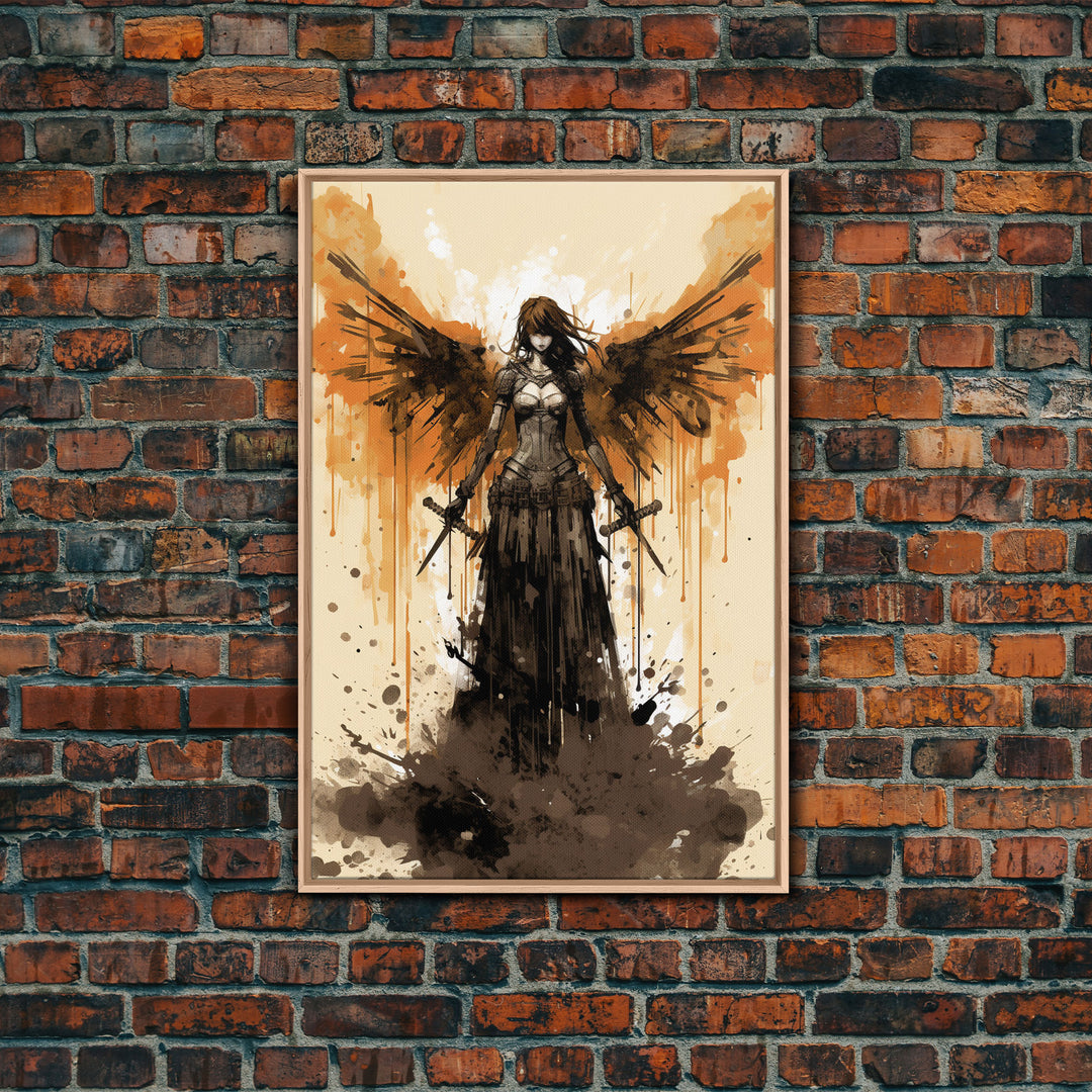 Dark Angel Wall Art, Gothic Wall Art, Watercolor Art, Canvas Print, Wall Art, Vertical Art, Dorm Room Art, Bedroom Prints, Gaming Wall Decor