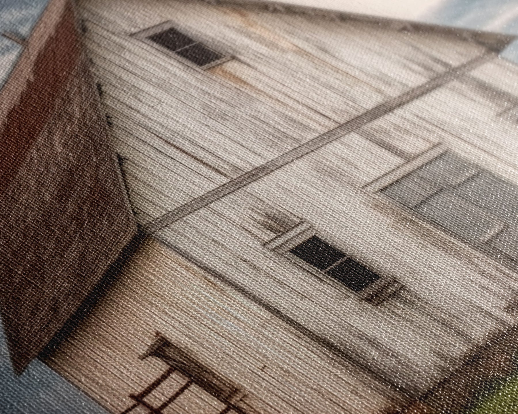 Most of our canvases are made in the USA, with the exception of canvases ordered with the light oak unstained frames, and any large canvases (24x48, 30x60, 16x48 and 20x60) ordered WITH a frame. These are temporarily made in and shipped from Europe, while we try to find a more consistent supplier in the USA.
