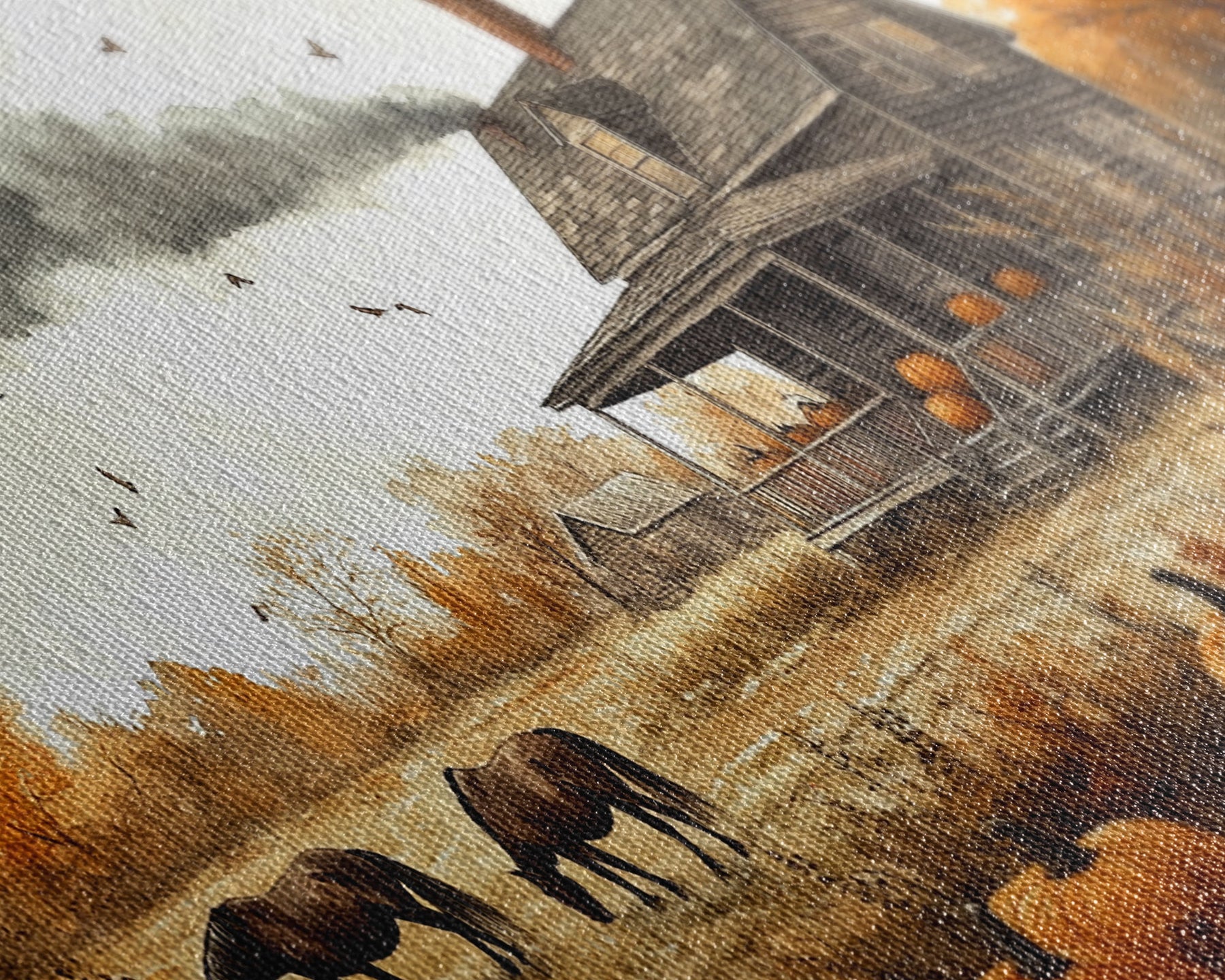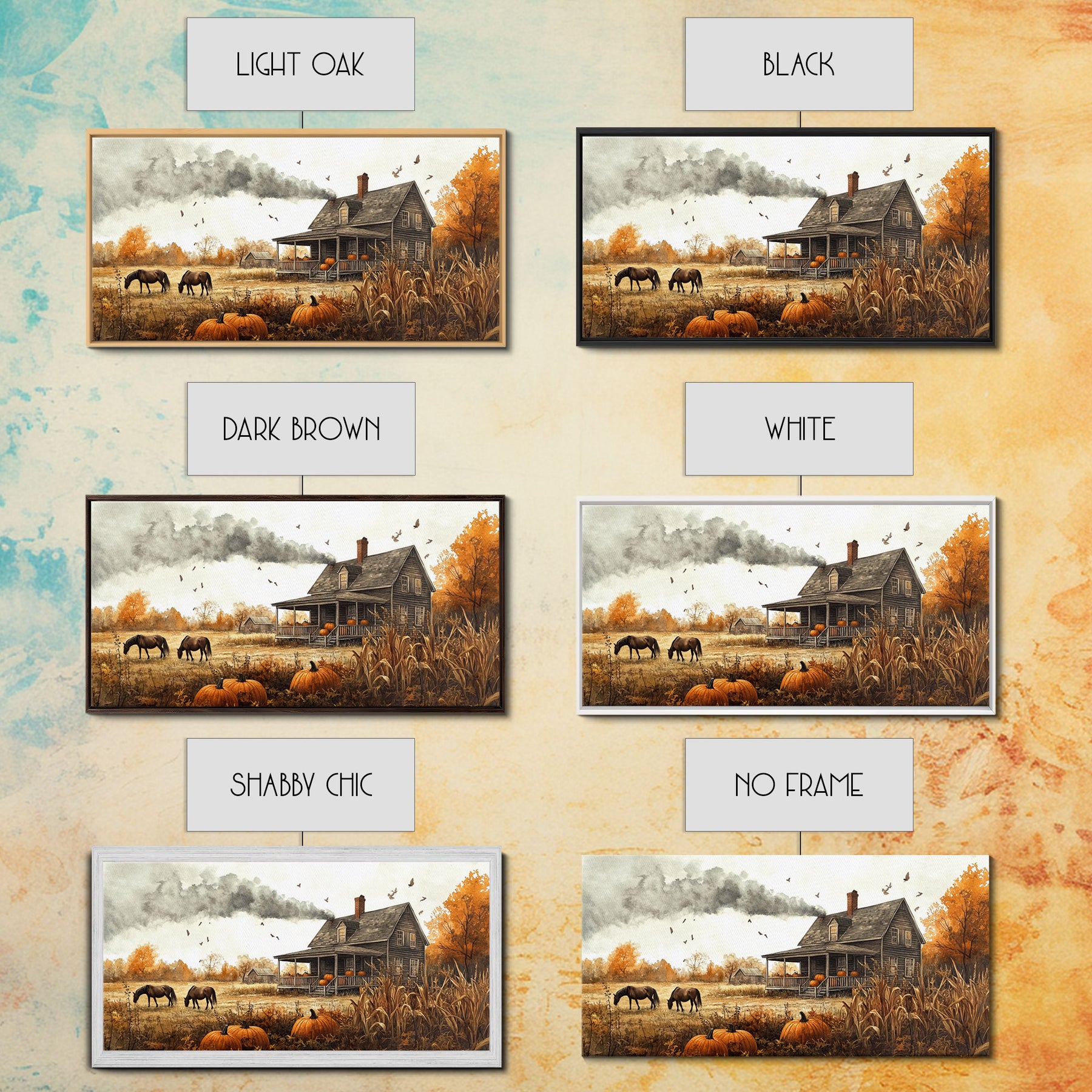 Horses grazing in autumn landscape, fall farmhouse decor, rustic wall art, decor, vintage fall wall print, framed canvas print