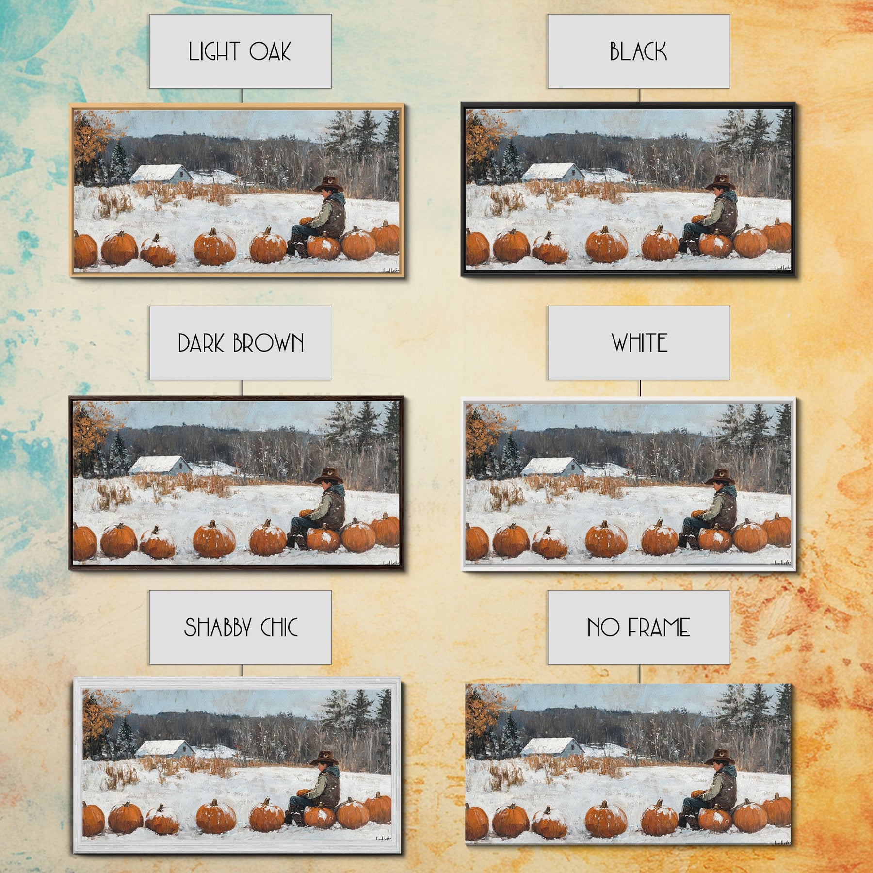 Cowboy Sipping Coffee Autumn Decor Framed Canvas Print Perfect Above Sofa Wall Art Western Home Decor Moody Fall Artwork Rustic
