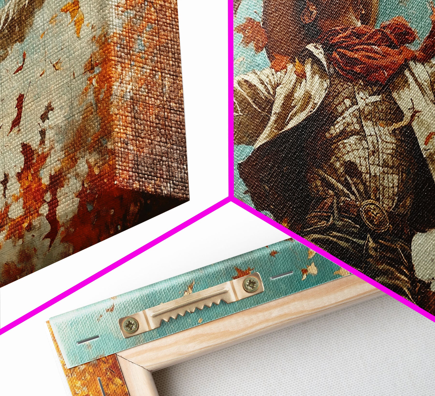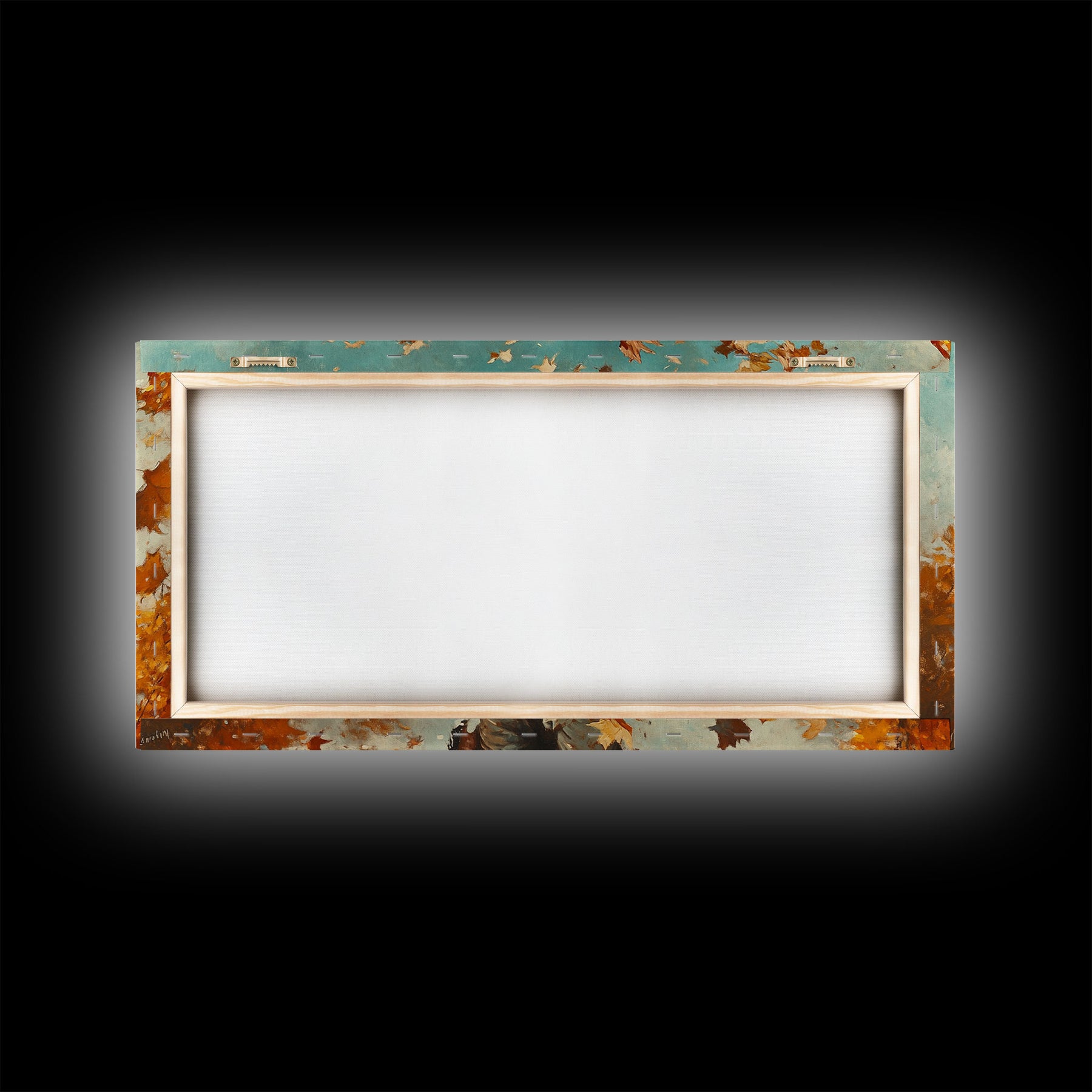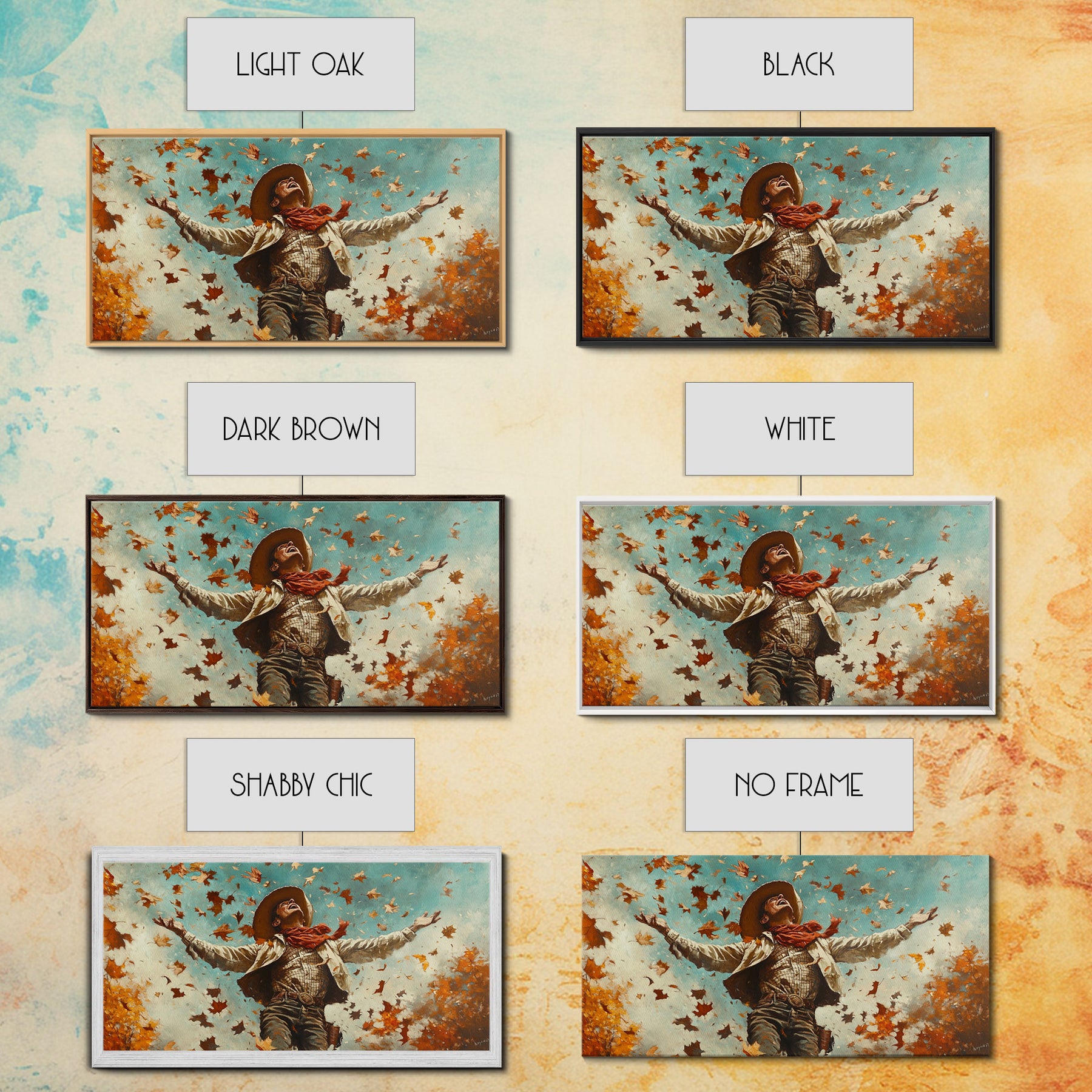 Cowboy Throwing Leaves In The Air, Funny Western Decor, Framed Canvas Print, Mood Lifting Wall Art, Fall Decor