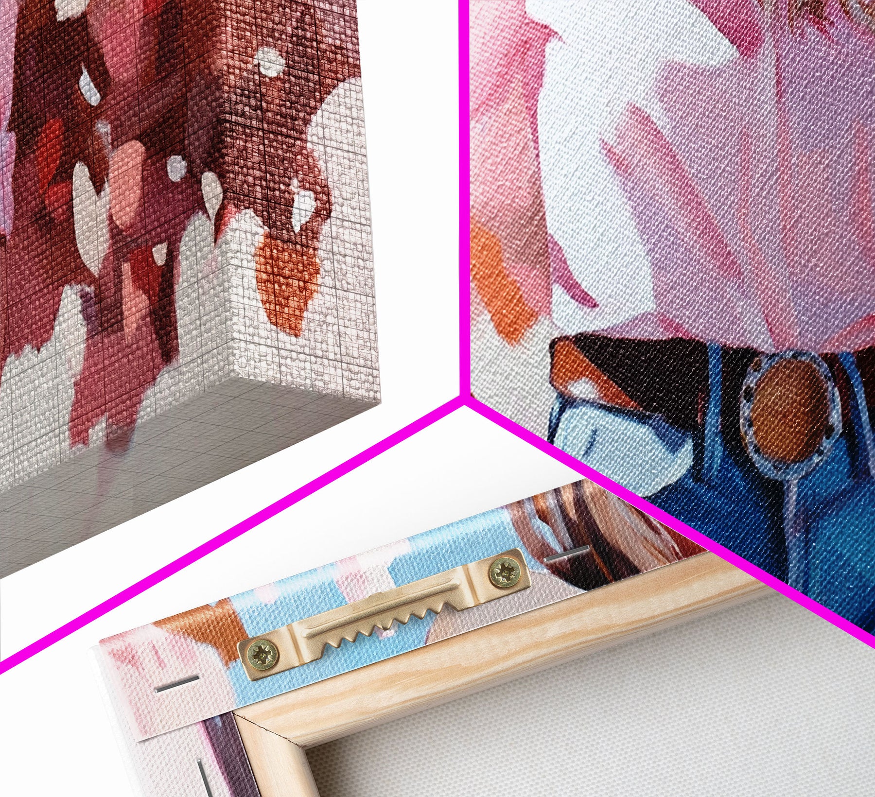 Hello and thank you for taking the time to view our modern high quality giclée artwork! We offer both posters and stretched canvas prints. Our posters are printed on Ultra Matte 60 lb / 230 GSM high quality photo paper, with a thickness of 10 mil. Our canvases are printed on museum grade 350 GSM canvas material with ECO friendly archival grade ink, then hand stretched and stapled over premium, FSC certified and shrink resistant frames. Designed and built to last a lifetime.