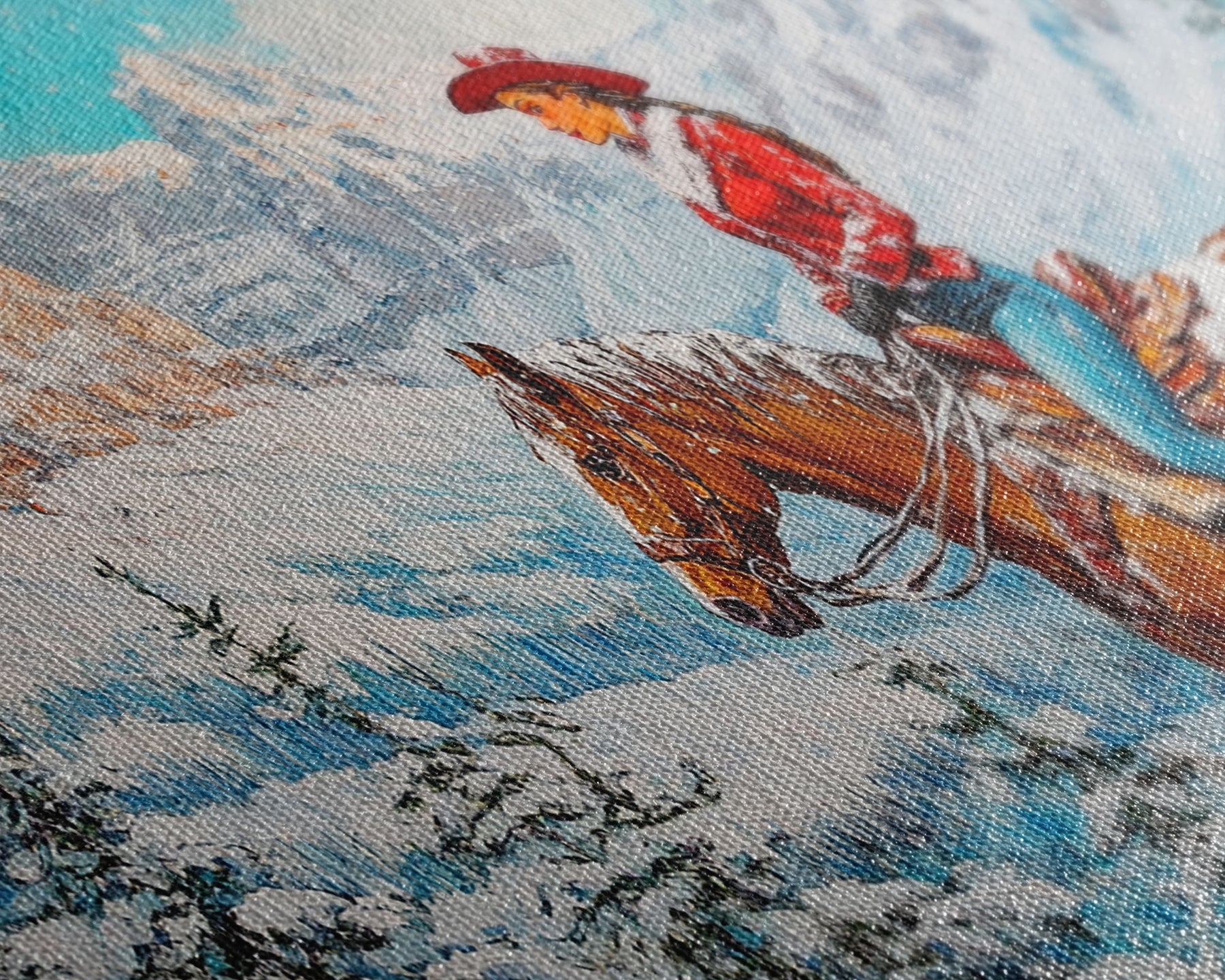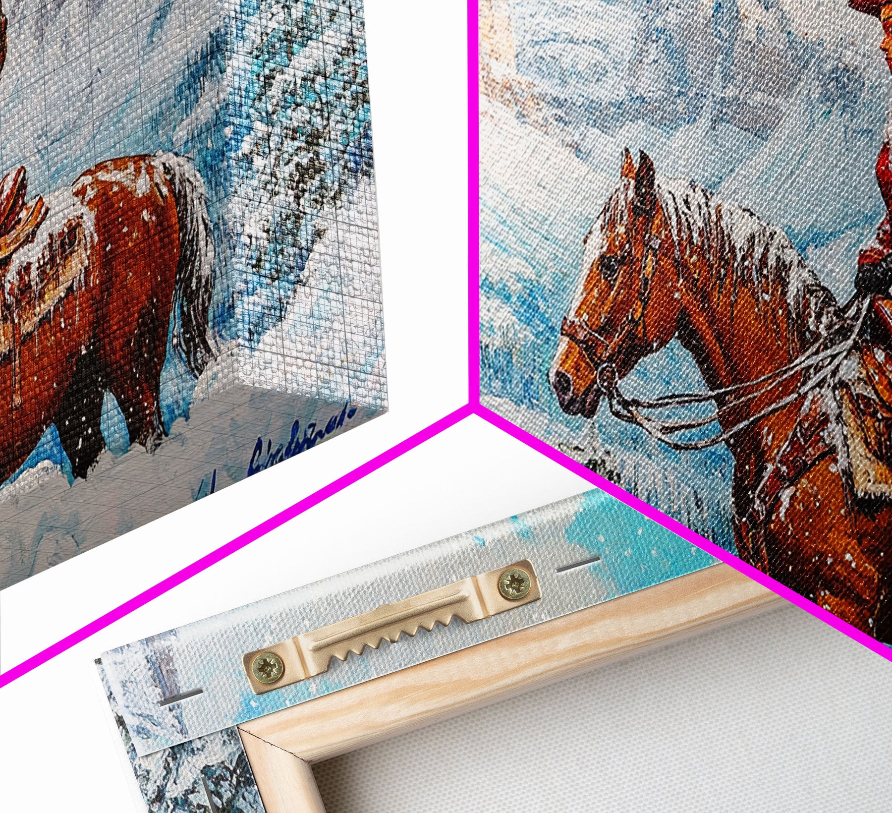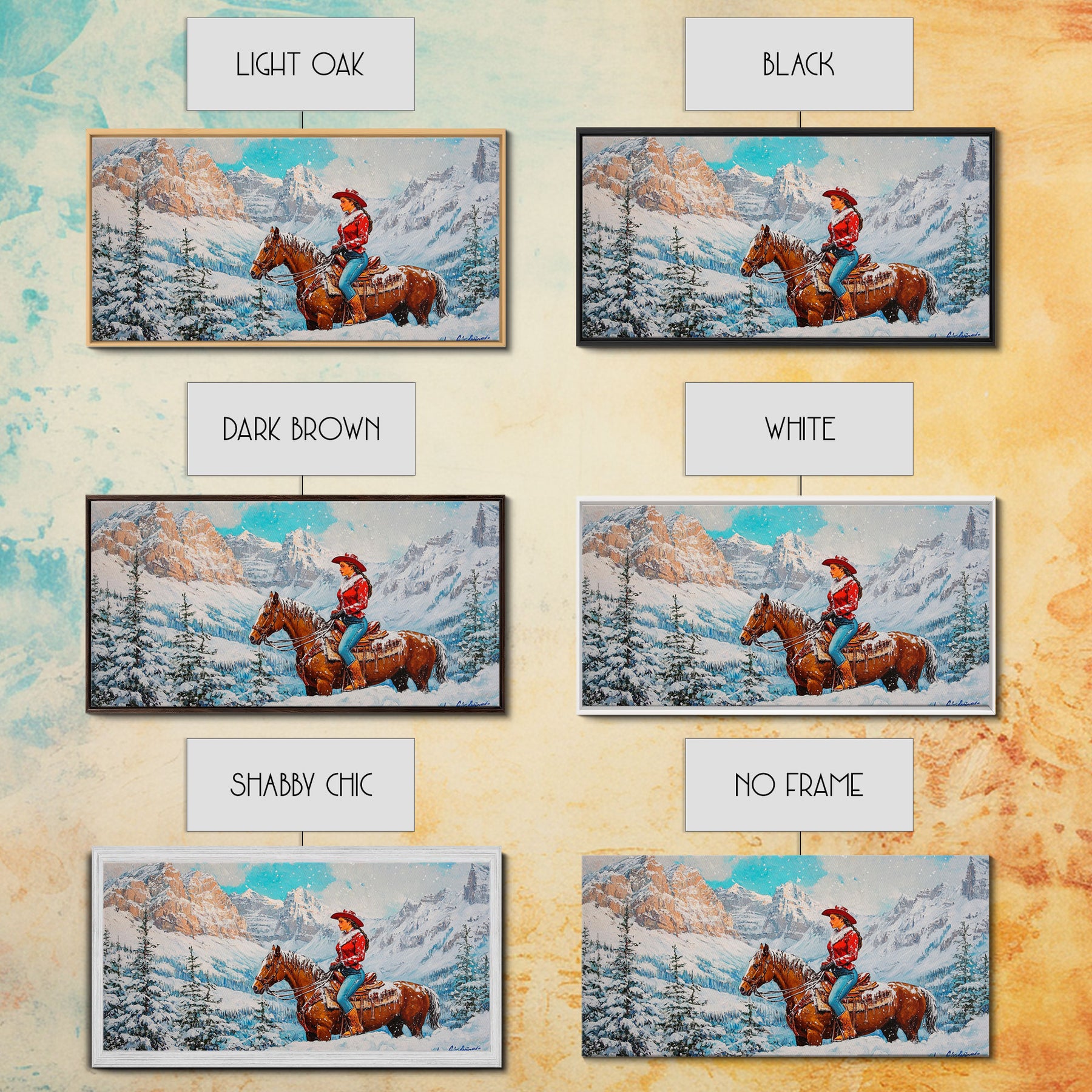 The Rider, Winter Cowgirl Framed Canvas Print, Farmhouse Western Decor, rustic winter wall art for holiday or seasonal decor