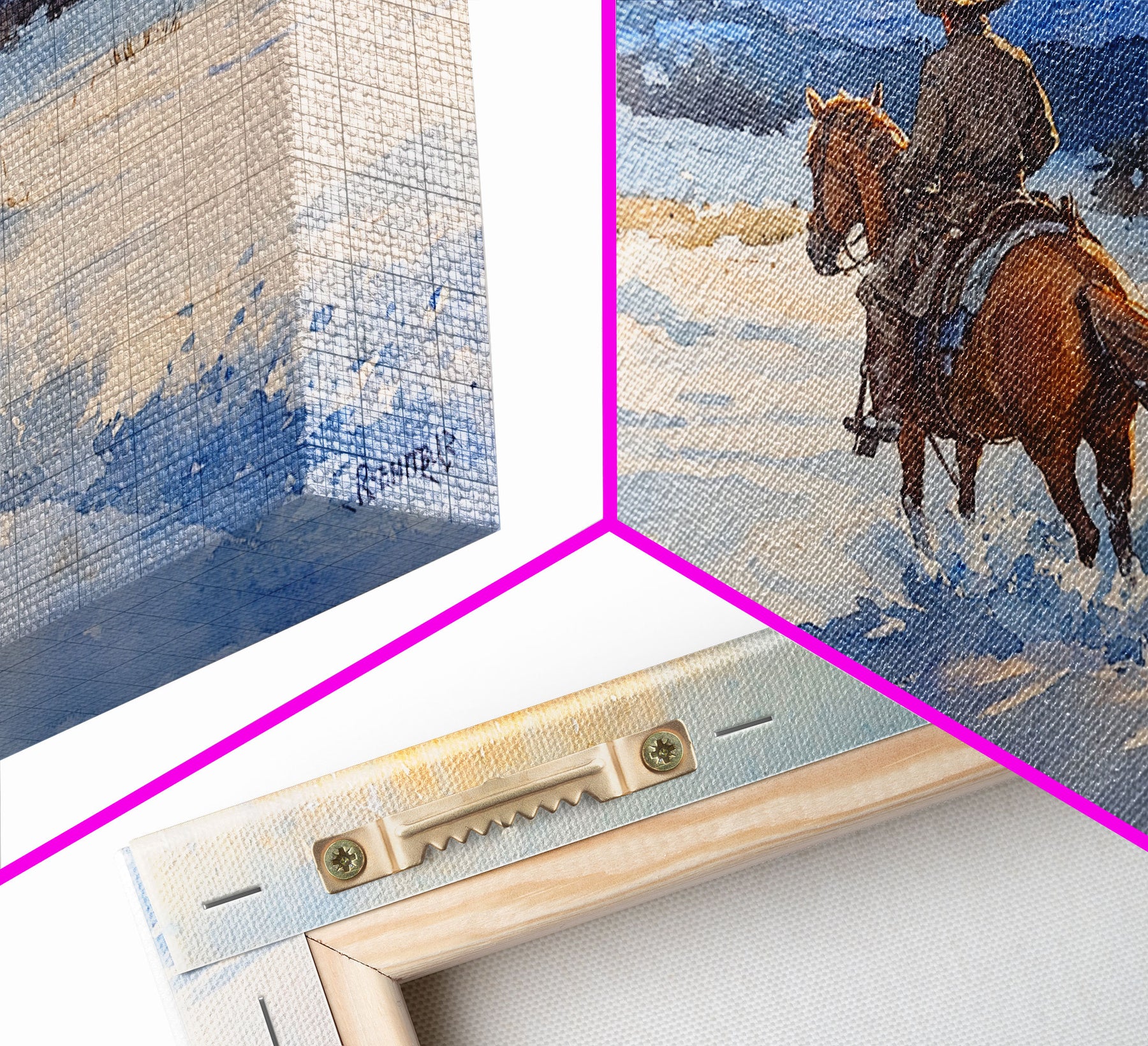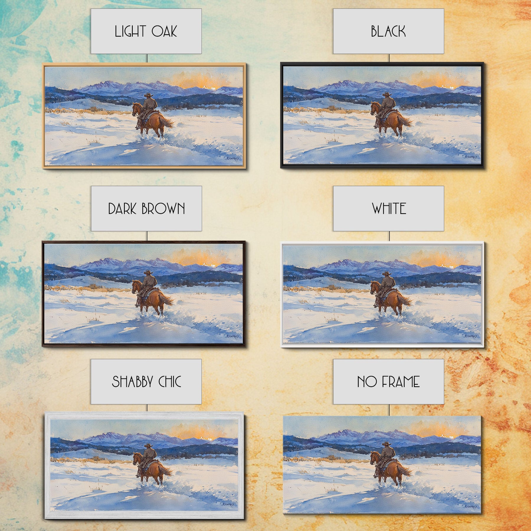 Cowboy In Golden Light Framed Canvas Print Tall Art Autumn Country Landscape Fall Decor Rustic Western Wall Art Farmhouse Decor Gift