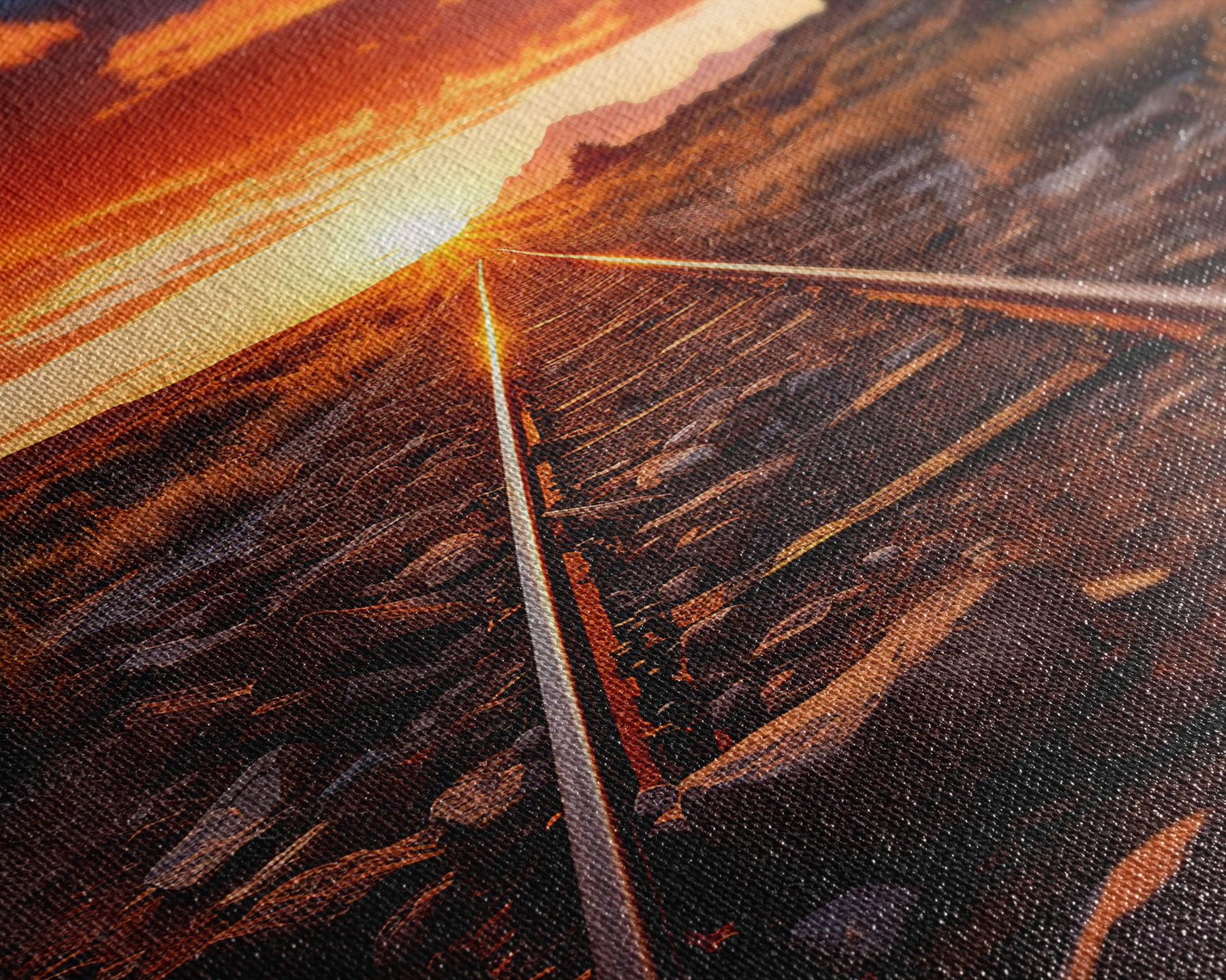 Most of our canvases are made in the USA, with the exception of canvases ordered with the light oak unstained frames, and any large canvases (24x48, 30x60, 16x48 and 20x60) ordered WITH a frame. These are temporarily made in and shipped from Europe, while we try to find a more consistent supplier in the USA.