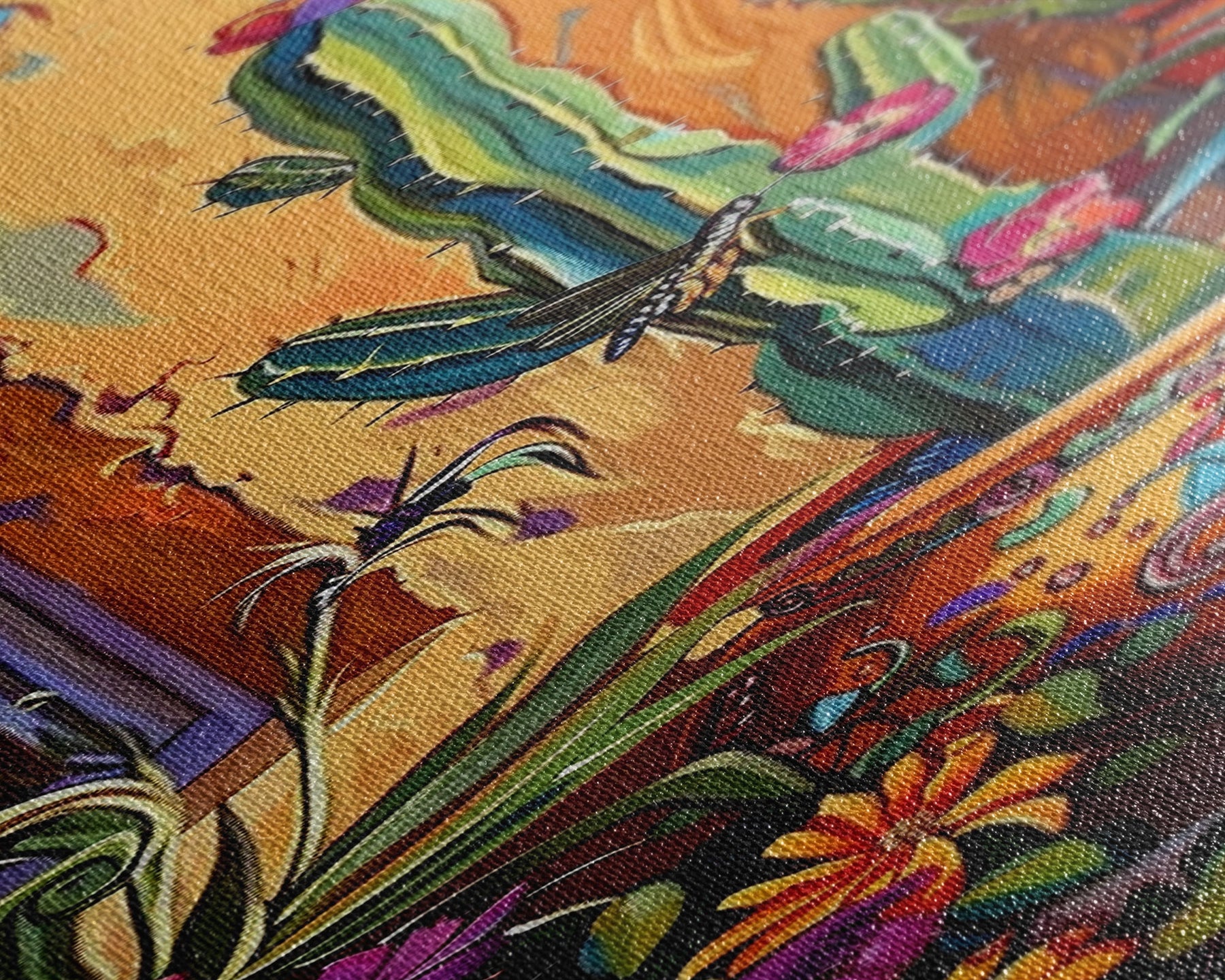 Colorful Canvas Painting of Cactus Framed, Botanical Wall Art Print, Spanish Inspired Canvas Painting, Long and Narrow Living Room Wall Art