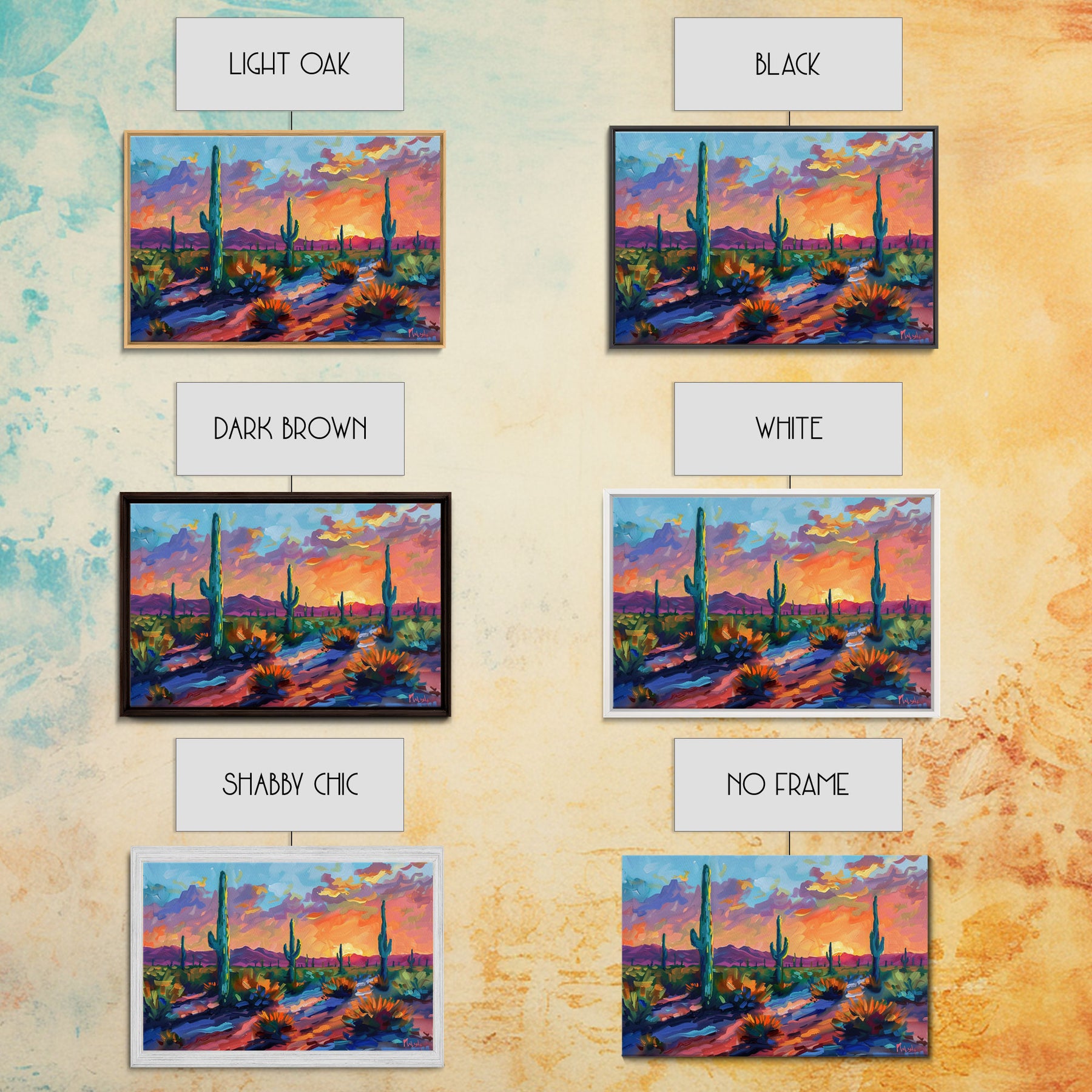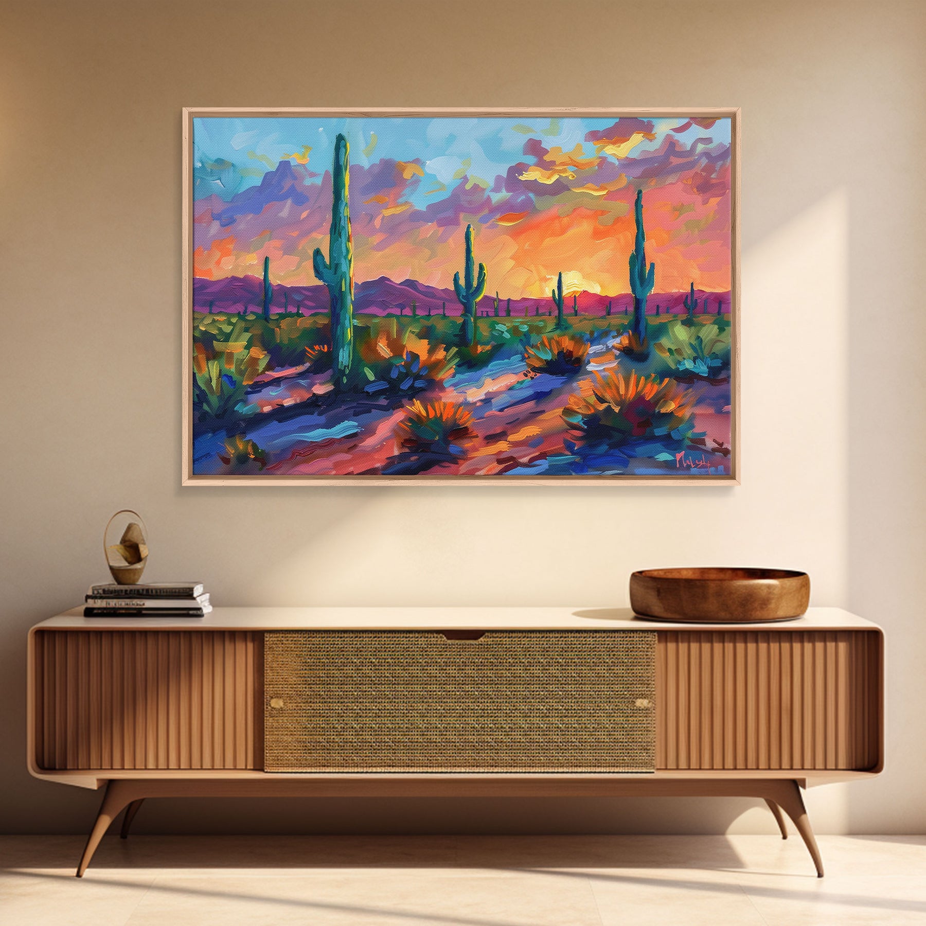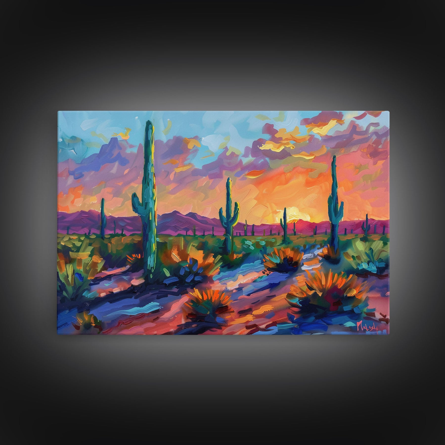 Sunset In The Desert, Framed Canvas Print, Out In The Desert, Southwestern Decor, Watercolor Painting, Original Painting