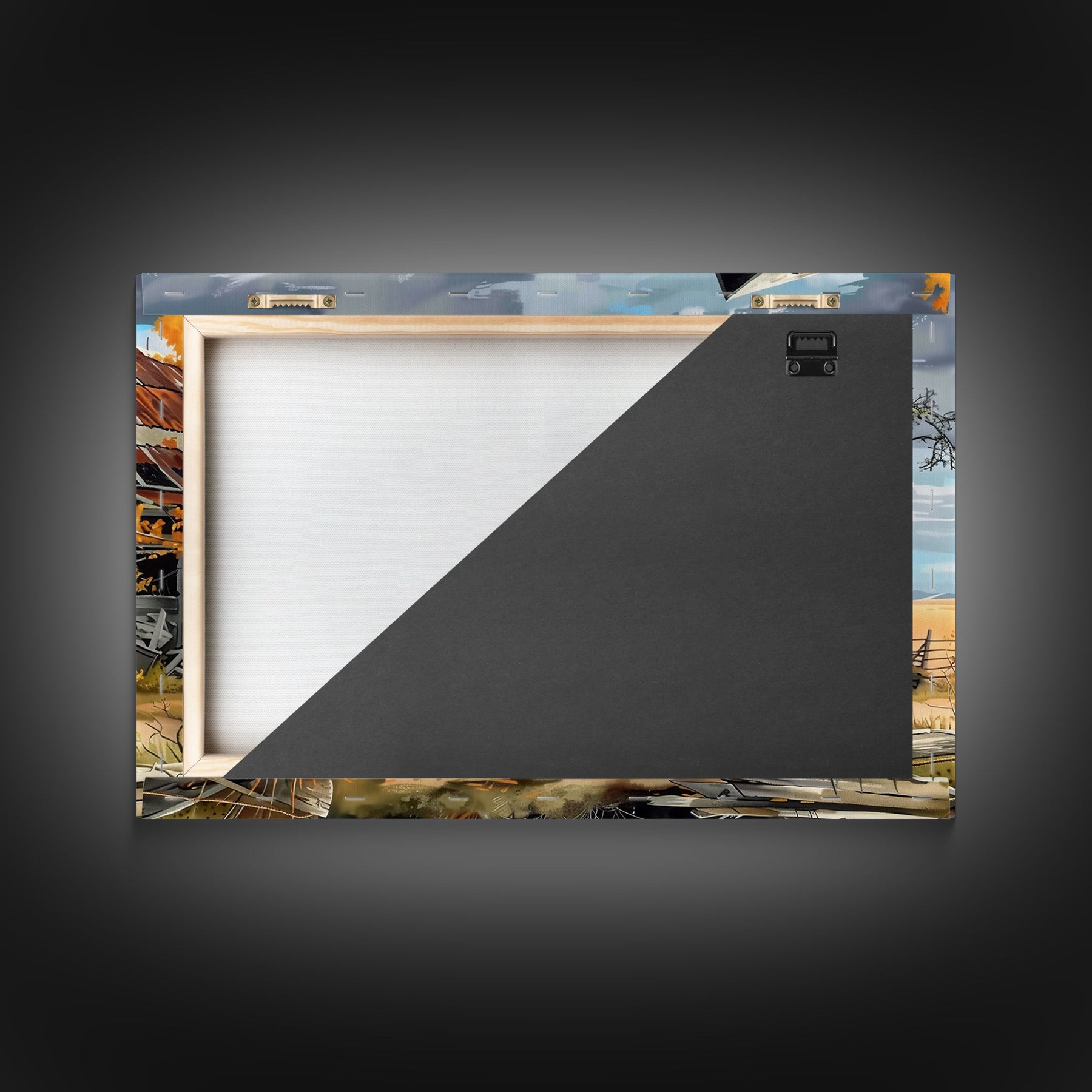 Painting Of An Old Farmstead Framed Canvas Print, Metal Art, Living Room Wall Art, Original Art, Above Couch Art, Whimiscal Kitsch Decor