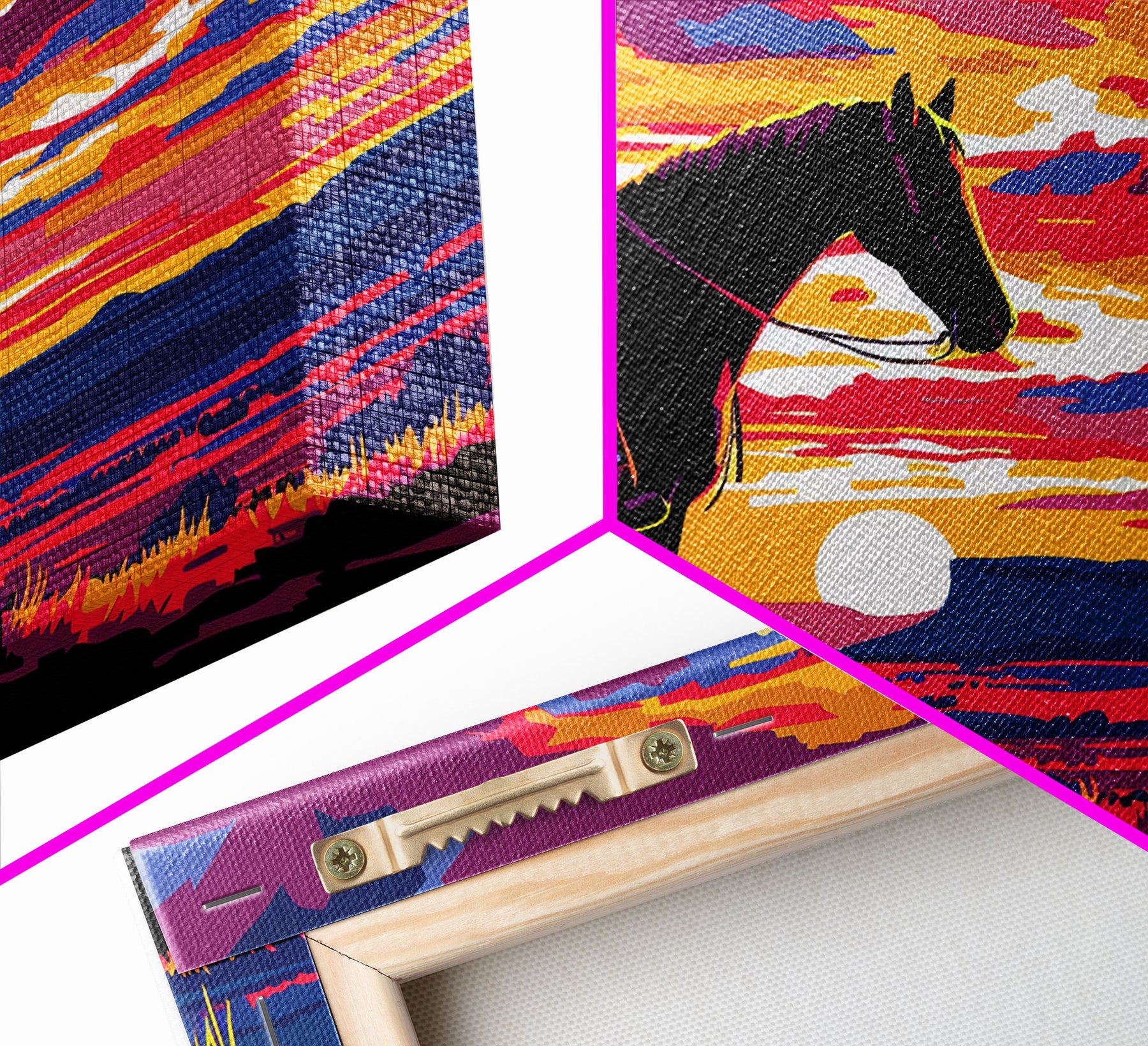 Hello and thank you for taking the time to view our modern high quality giclée artwork! We offer both posters and stretched canvas prints. Our posters are printed on Ultra Matte 60 lb / 230 GSM high quality photo paper, with a thickness of 10 mil. Our canvases are printed on museum grade 350 GSM canvas material with ECO friendly archival grade ink, then hand stretched and stapled over premium, FSC certified and shrink resistant frames. Designed and built to last a lifetime.