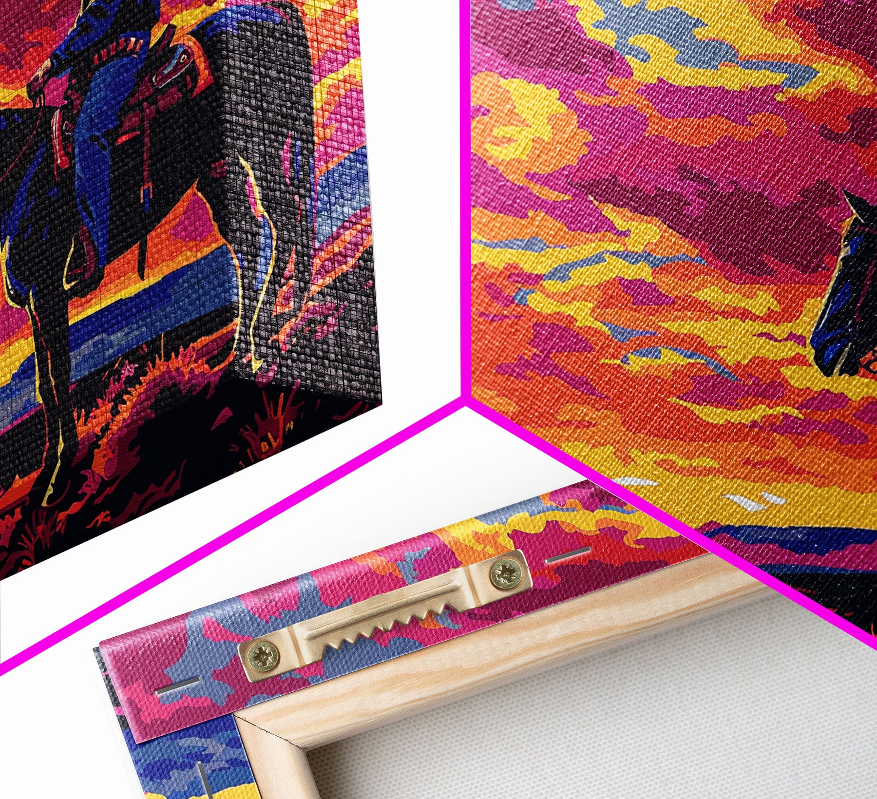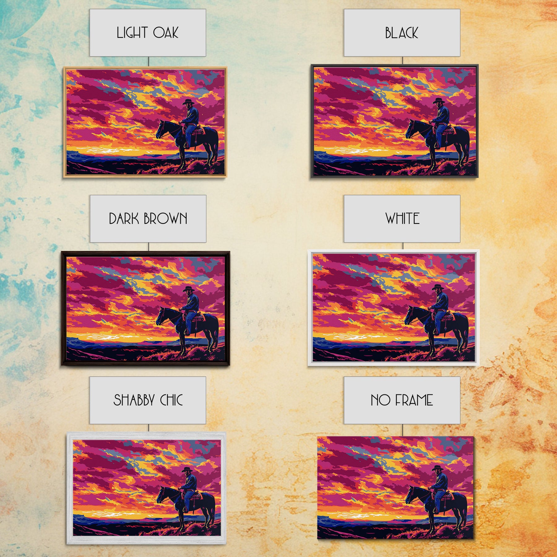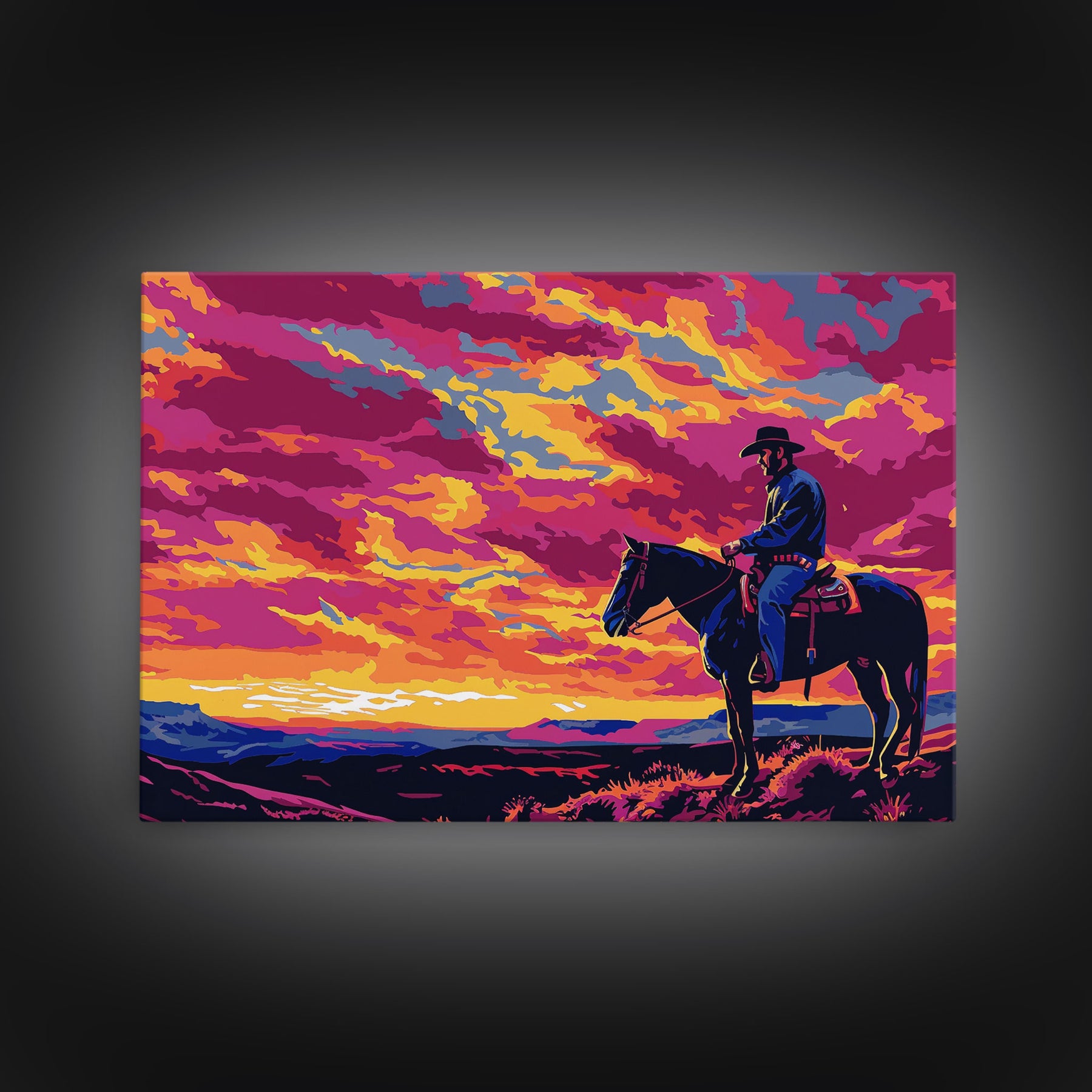 The Cowboy Rides At Sunset, Living Room Art, Framed Canvas Print Original Art, Watercolor Painting, Cowboy Painting, Rustic Western Decor