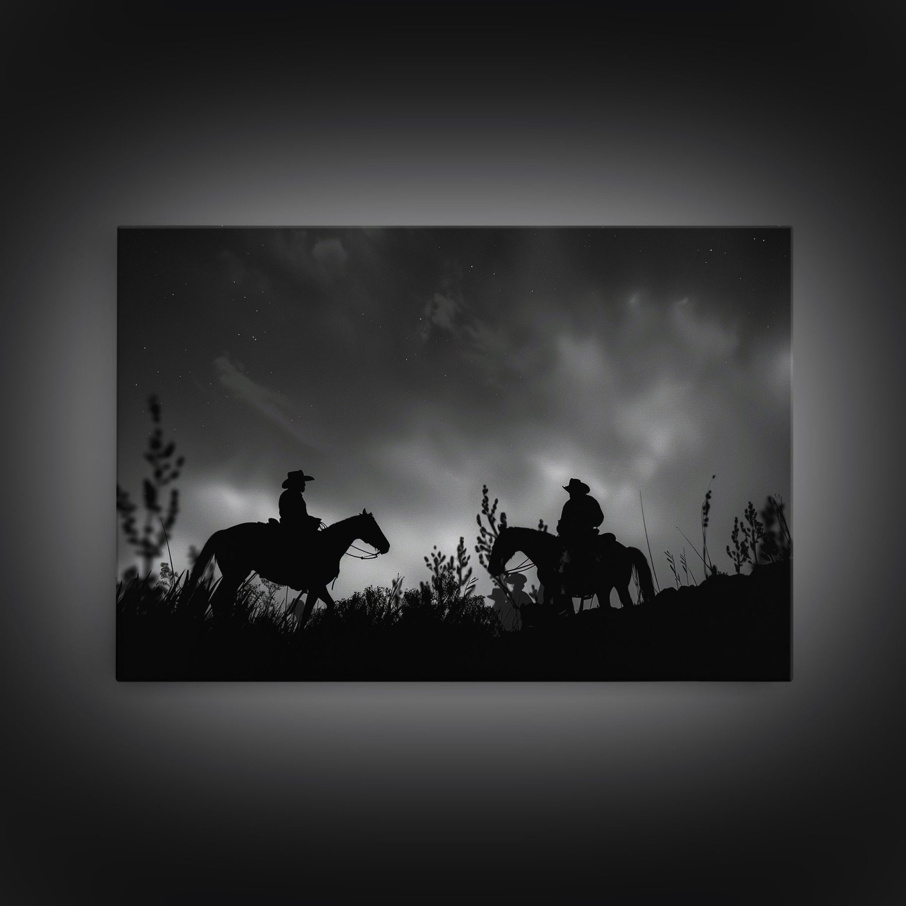 The Dawn Riders, Premium Framed Canvas, Black and White Cowboy Photography Print, Western Decor, Wild West Art, Farmhouse Wall Art