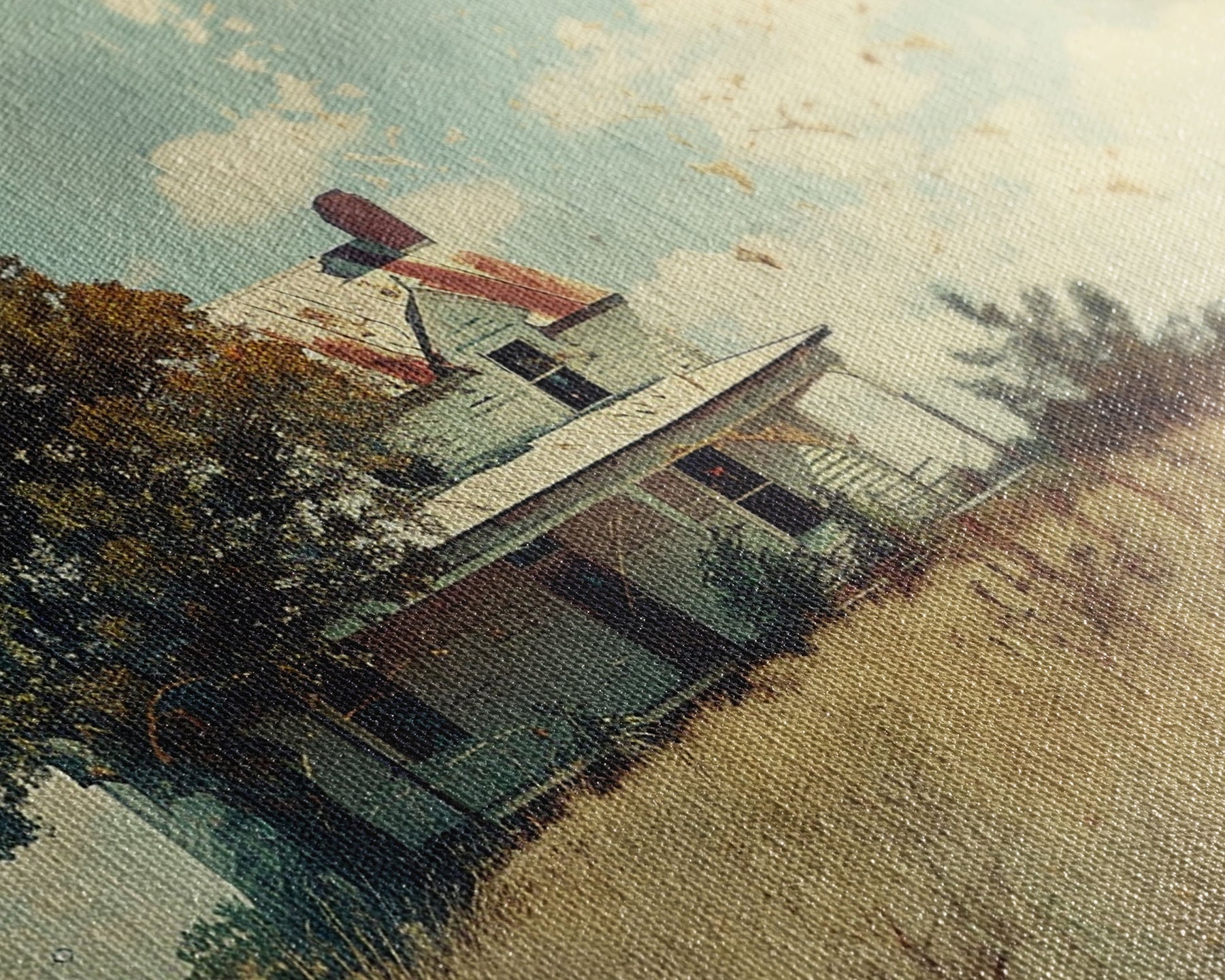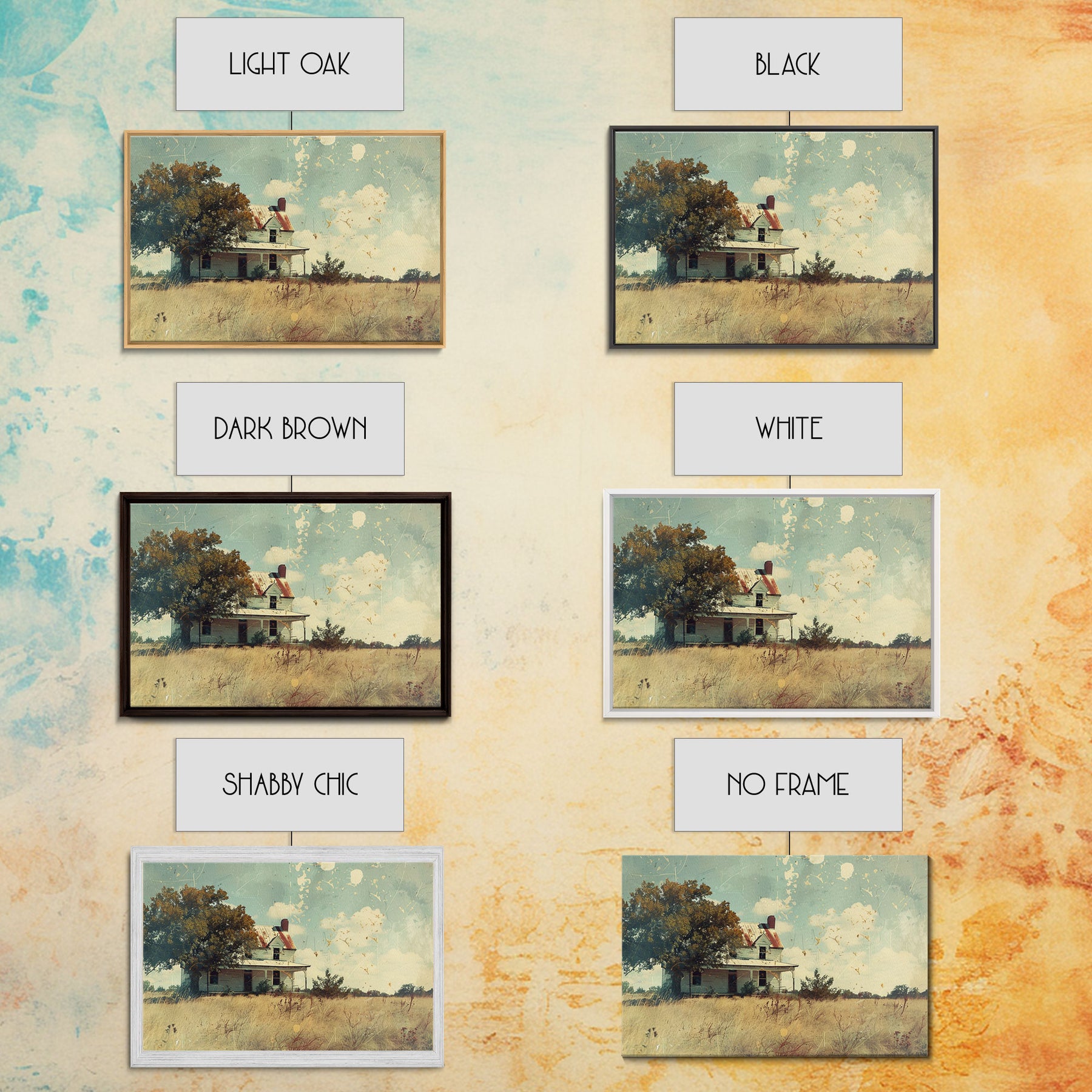 Old Farmhouse Watercolor Painting, Vintage Style Framed Canvas Print Or Metal Wall Art, Handmade Gift, Housewarming, Cottagecore Decor