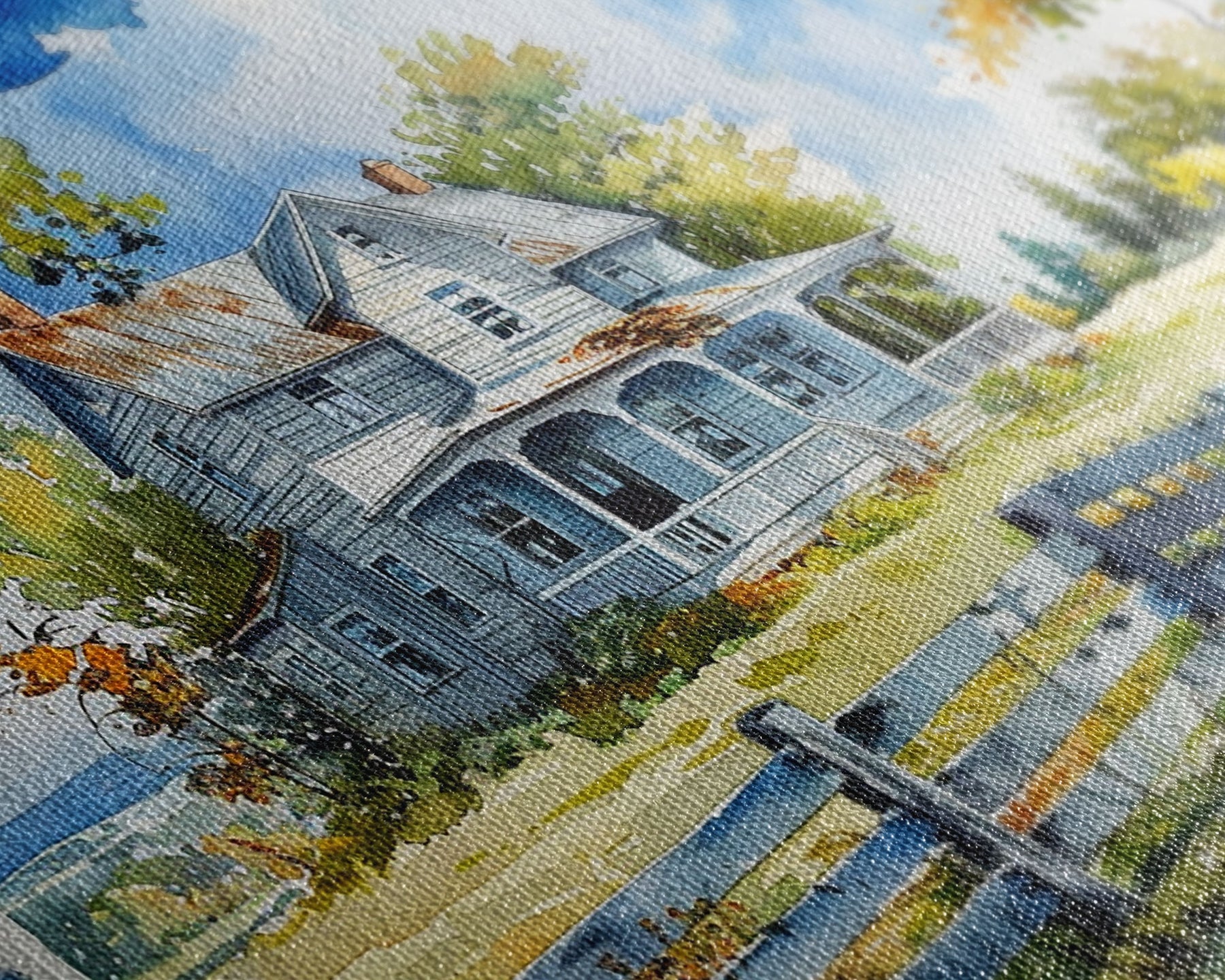 Most of our canvases are made in the USA, with the exception of canvases ordered with the light oak unstained frames, and any large canvases (24x48, 30x60, 16x48 and 20x60) ordered WITH a frame. These are temporarily made in and shipped from Europe, while we try to find a more consistent supplier in the USA.