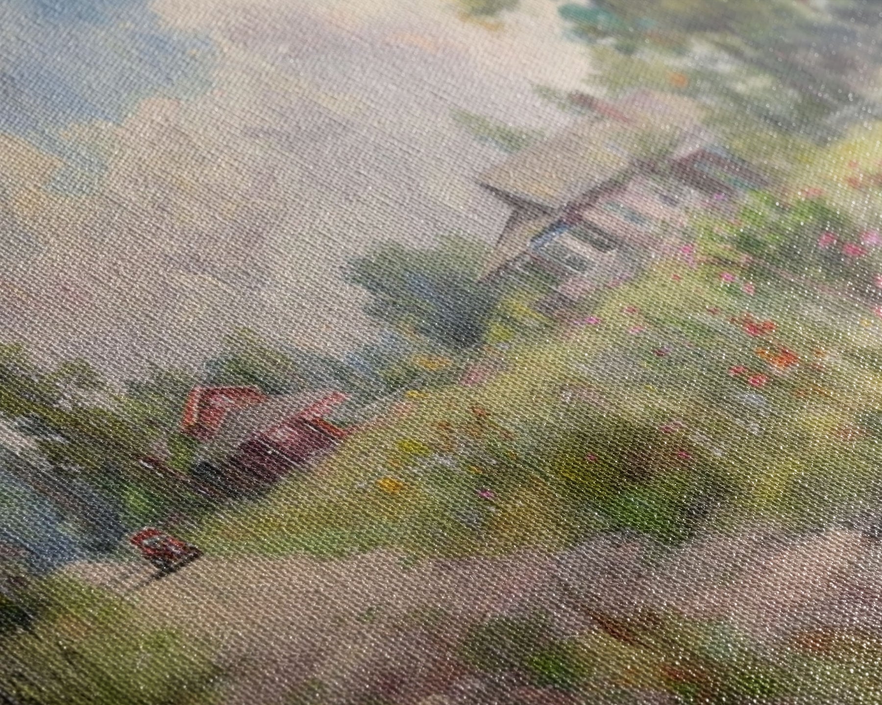 Most of our canvases are made in the USA, with the exception of canvases ordered with the light oak unstained frames, and any large canvases (24x48, 30x60, 16x48 and 20x60) ordered WITH a frame. These are temporarily made in and shipped from Europe, while we try to find a more consistent supplier in the USA.