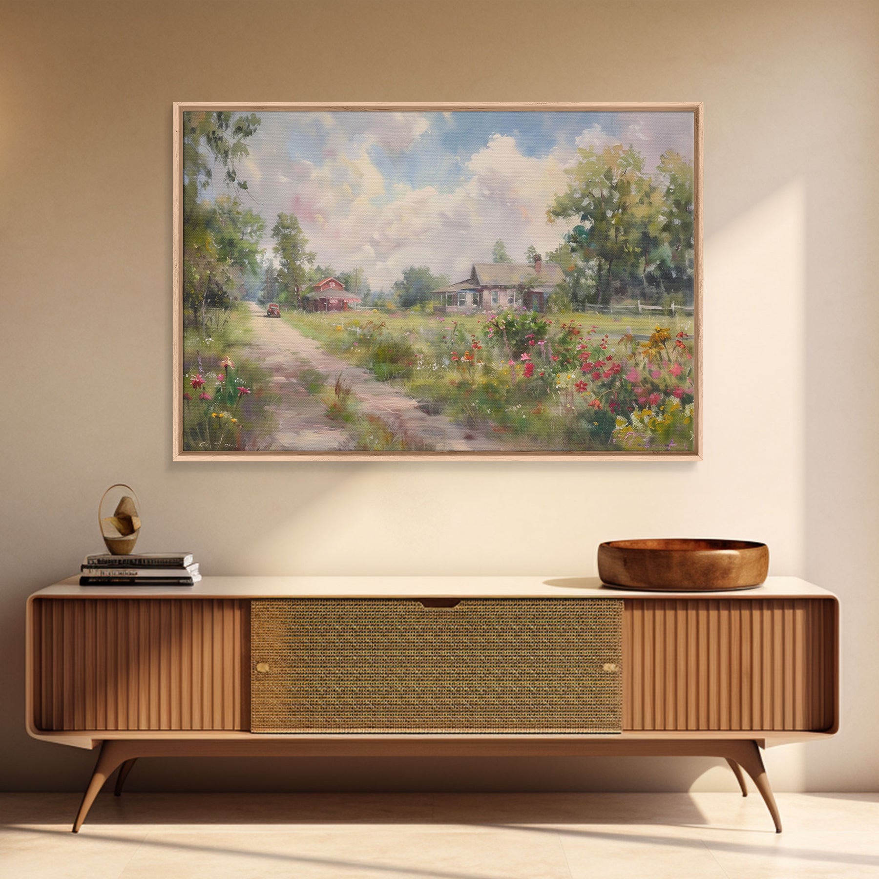 Kitsch Minimalist Watercolor Painting Print Of an Old Country Road, Wood Framed Print, Metal Wall Art, Room Decor, Aesthetic Room Decor