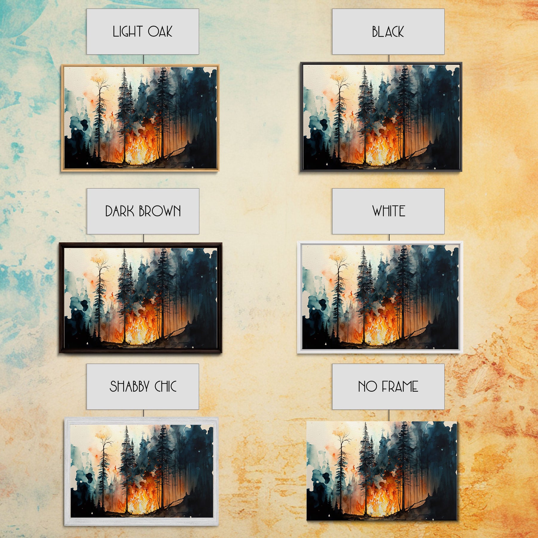 Watercolor Painting Print Of a Forest Fire, Framed Wall Art, Rustic Decor, Pine Tree Forest Print, Living Room Art, Bed Room Wall Art